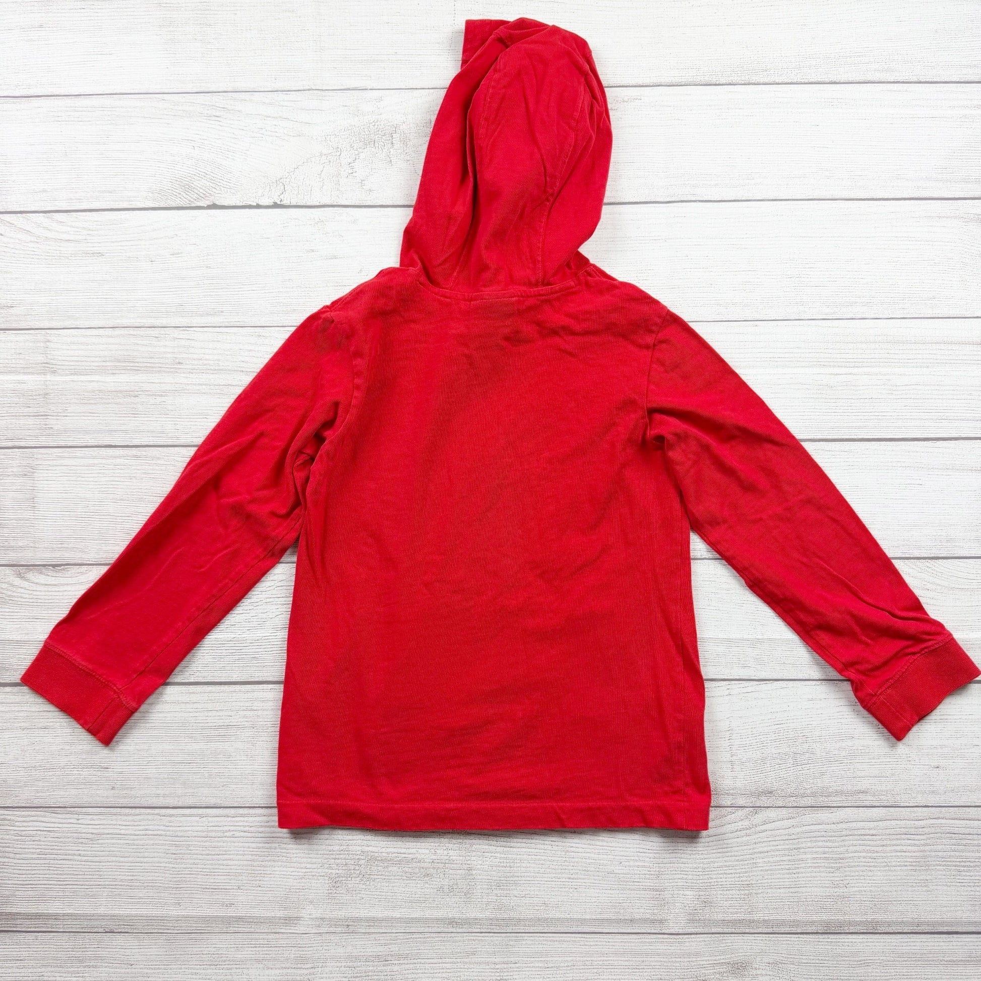 Red long sleeve hoodie hooded sweatshirt with logo graphic. Cotton