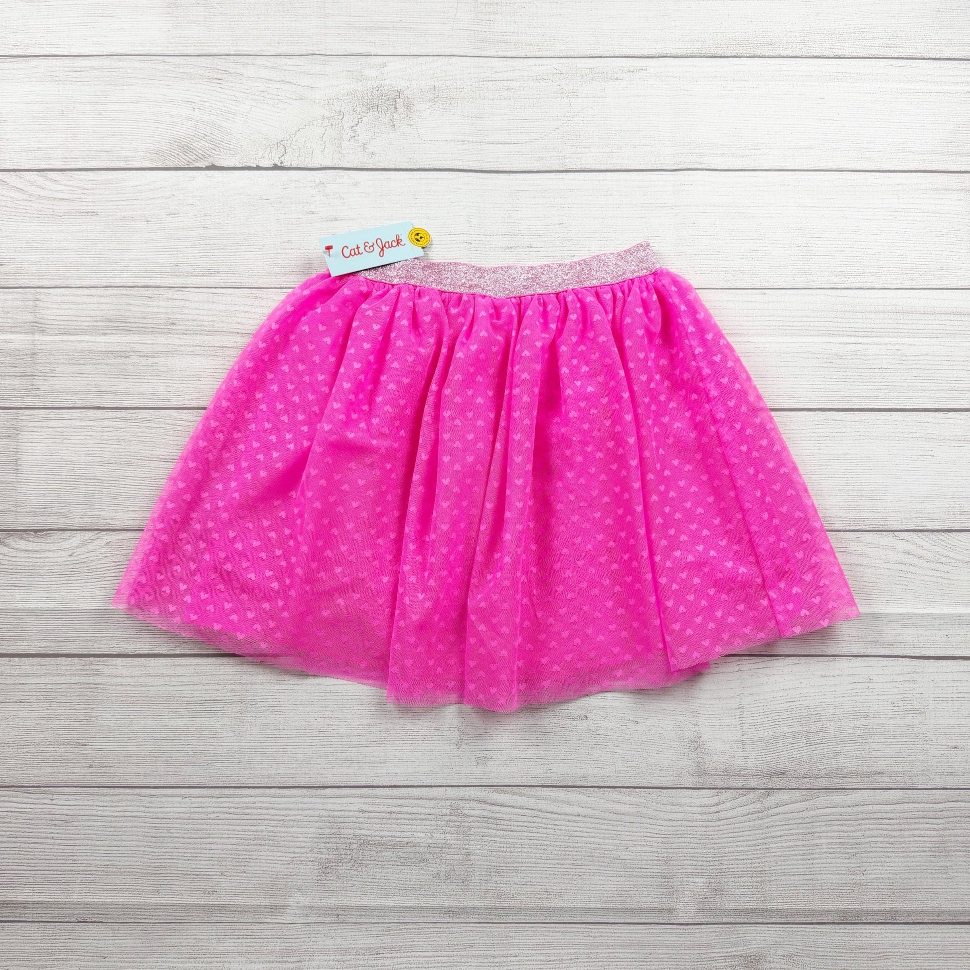 Pink tulle tutu skirt with heart print. Valentine’s Day. Polyester