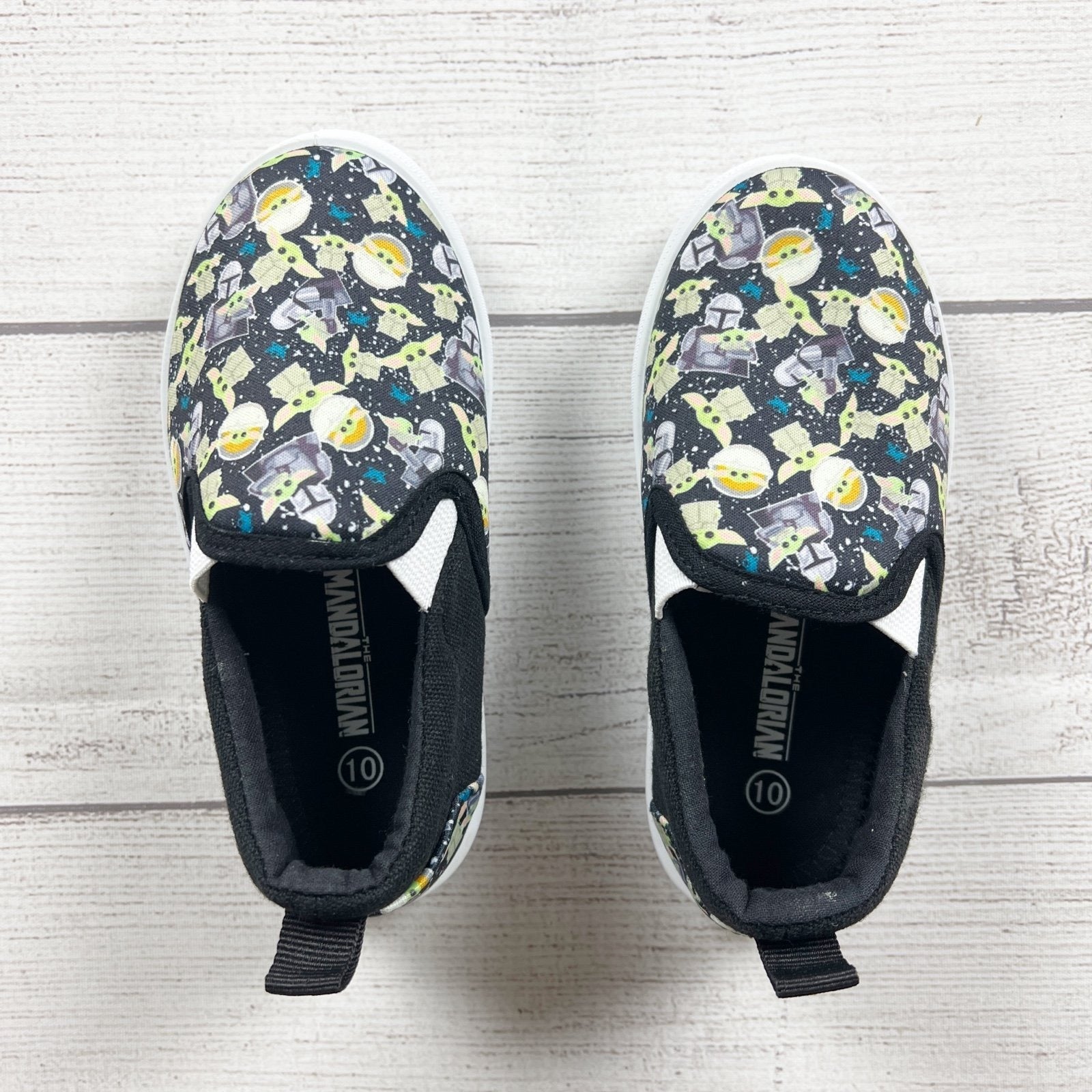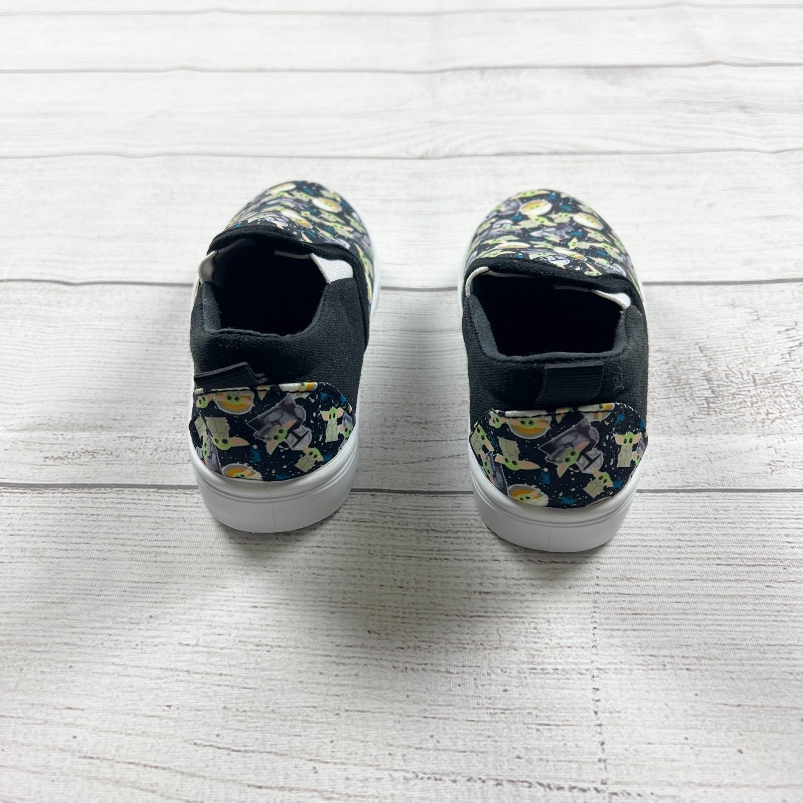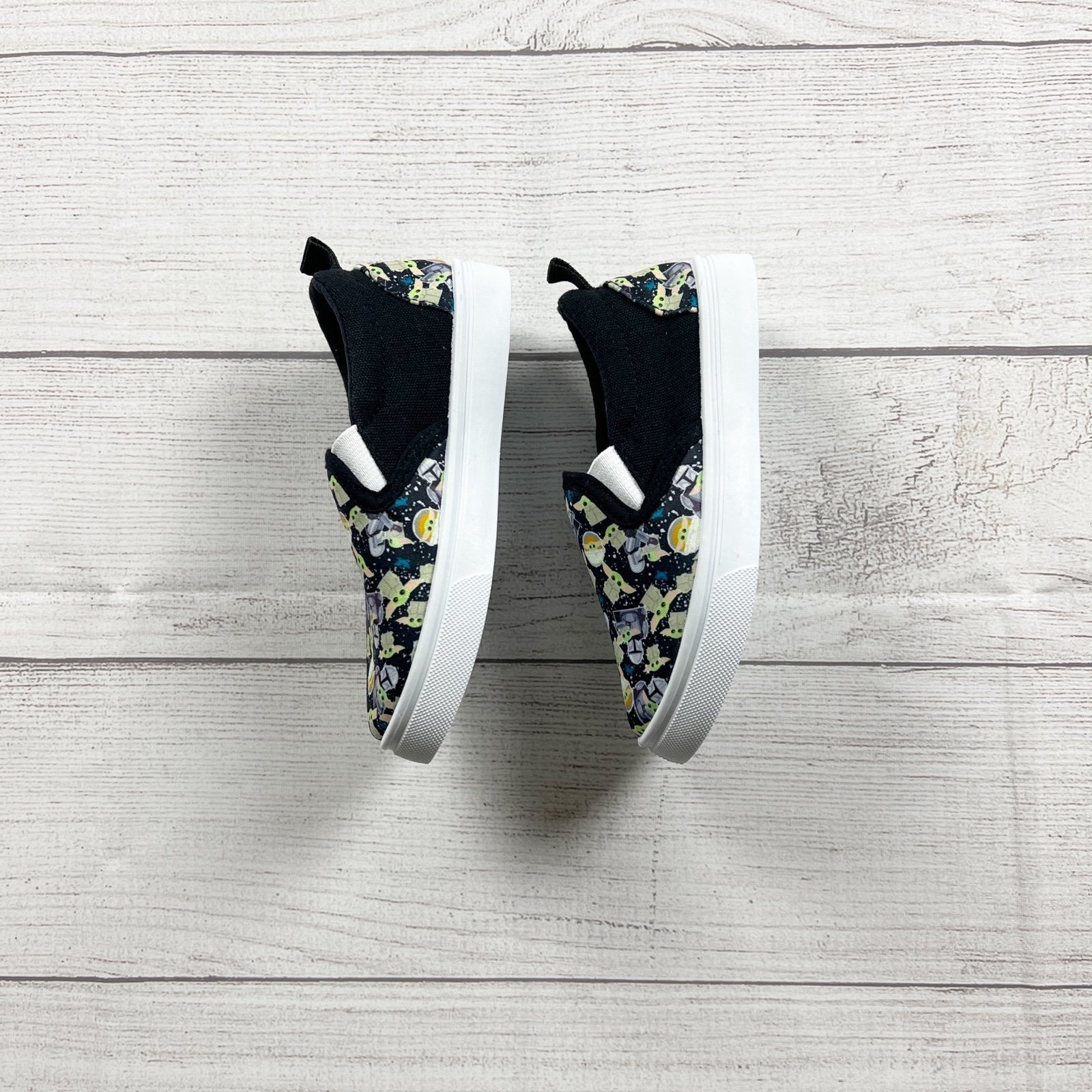 Black and white canvas slip on shoes sneakers with baby Yoda Grogu print