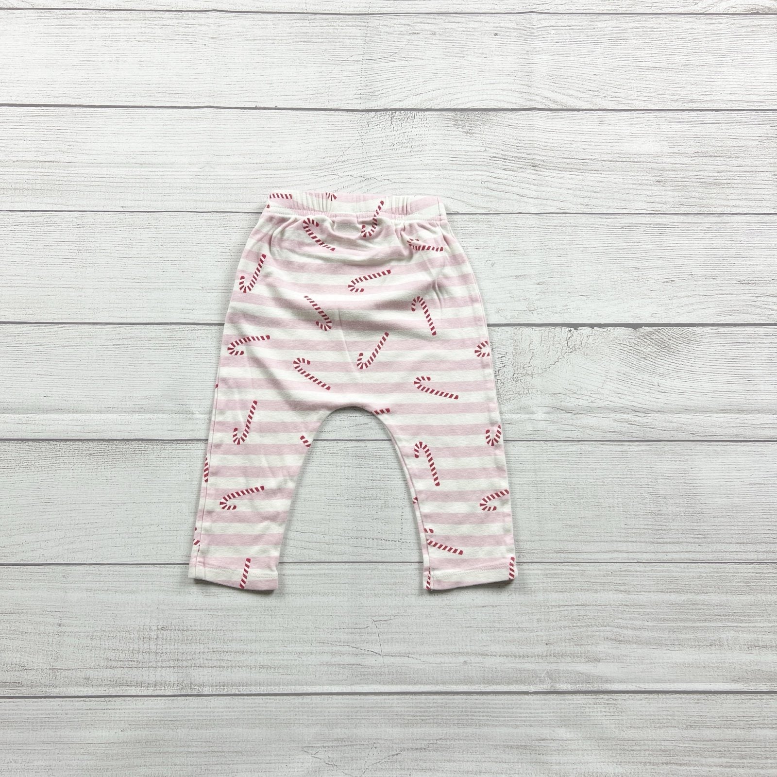 Pink and white striped harem joggers pants with candy cane print. Cotton