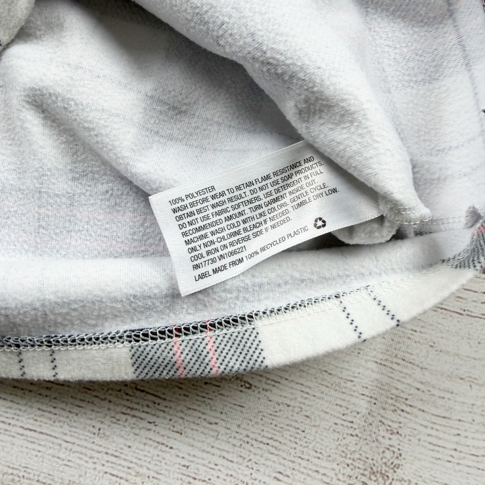 One piece nightgown pajamas in white black red plaid. Polyester.