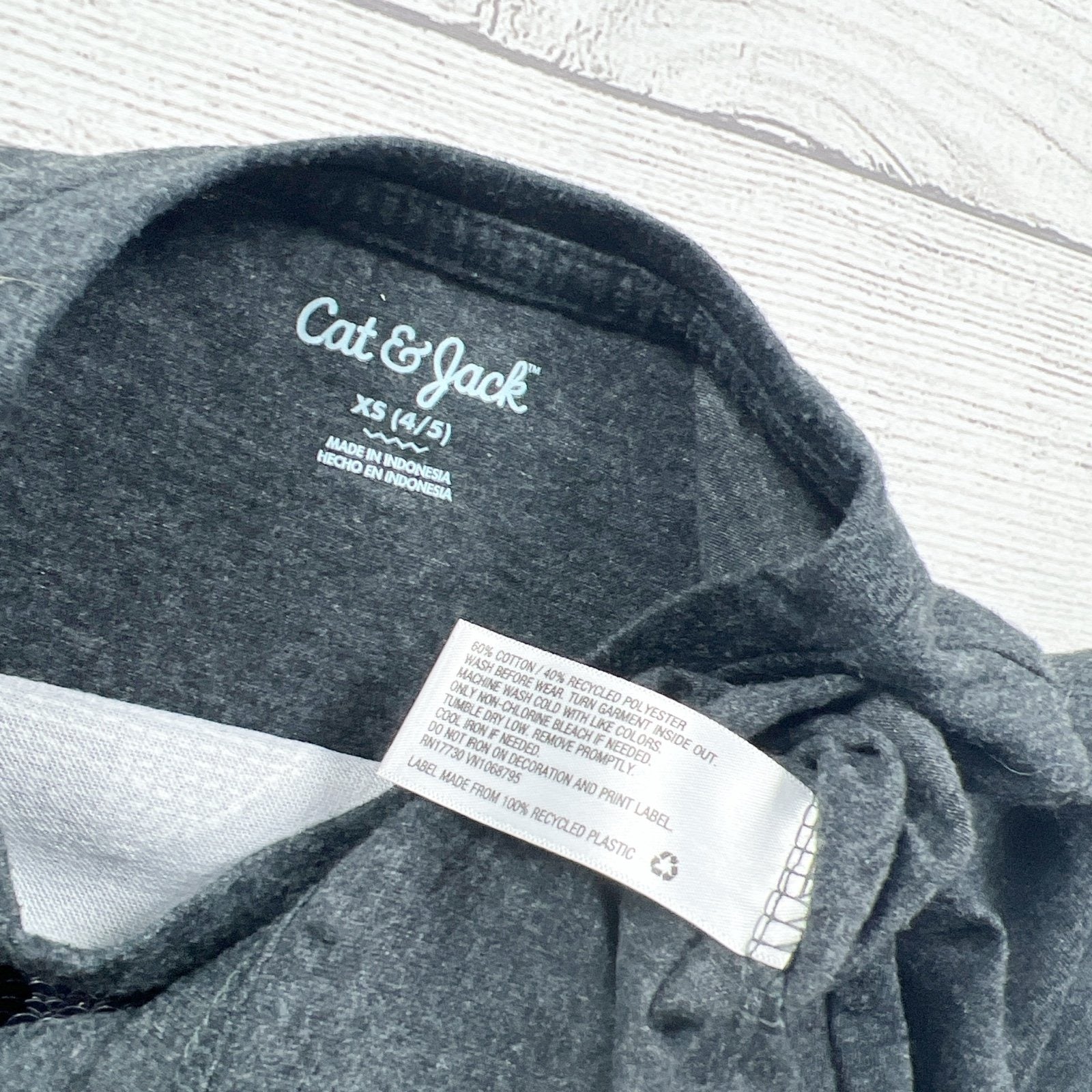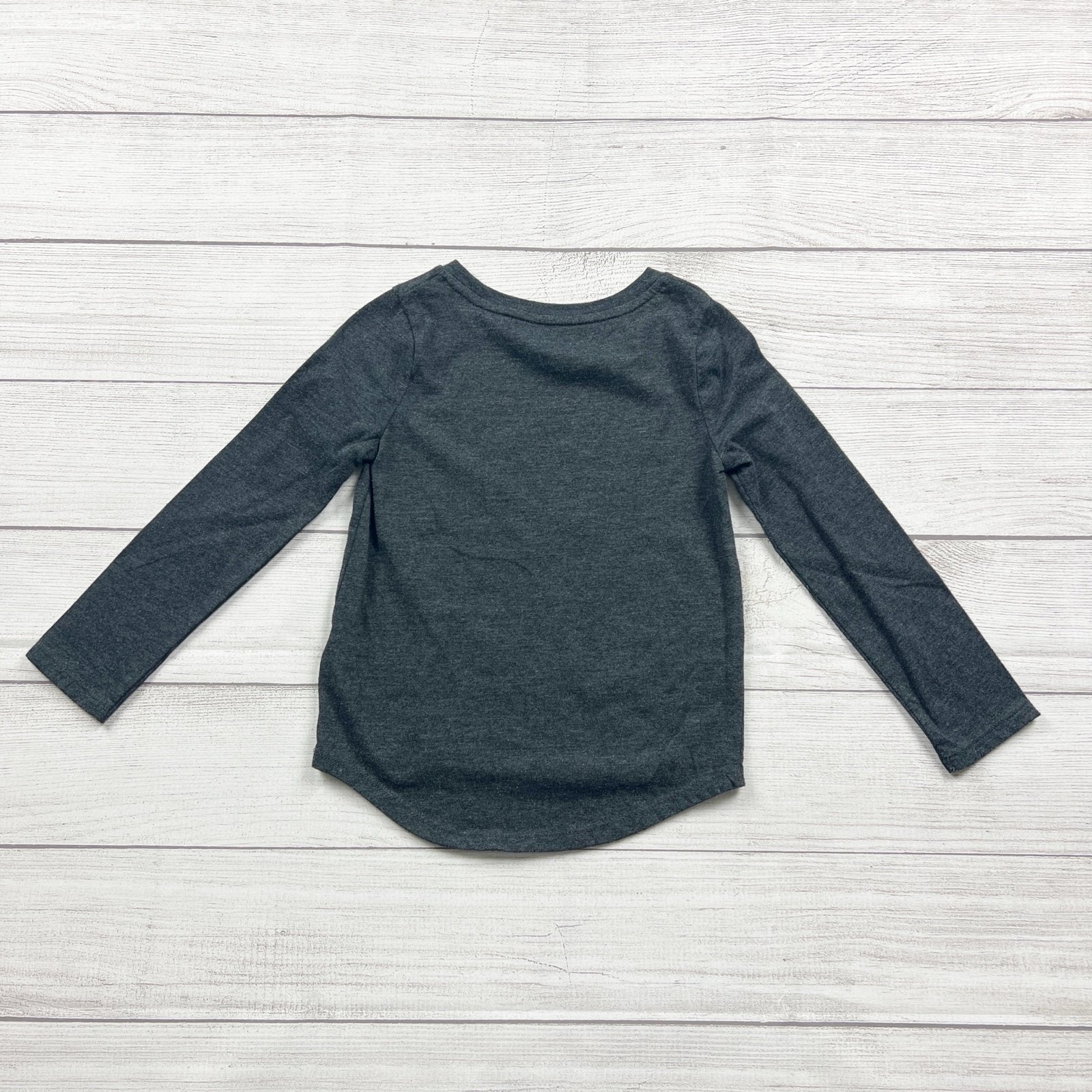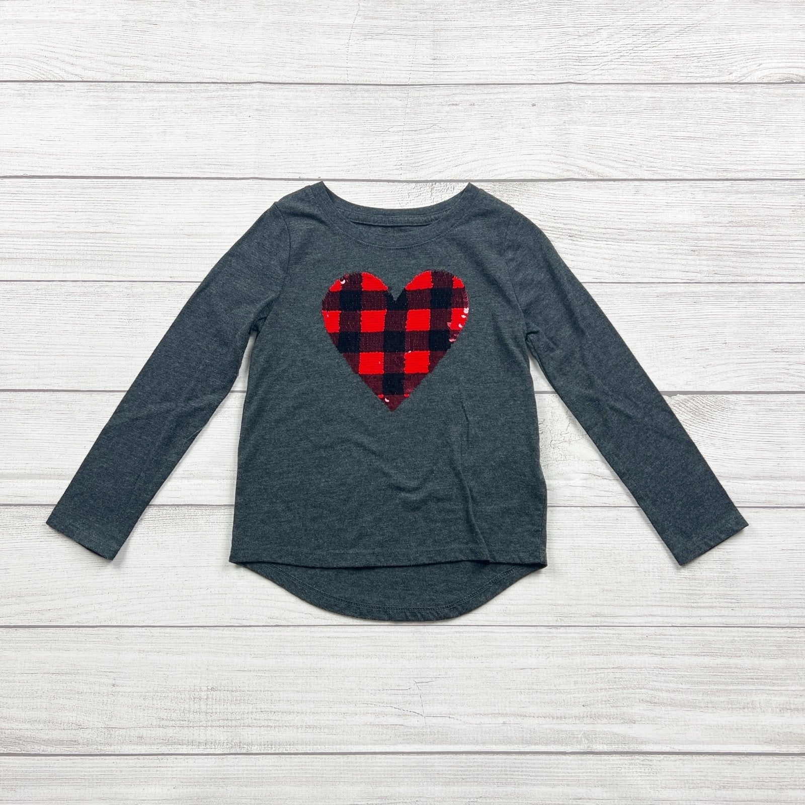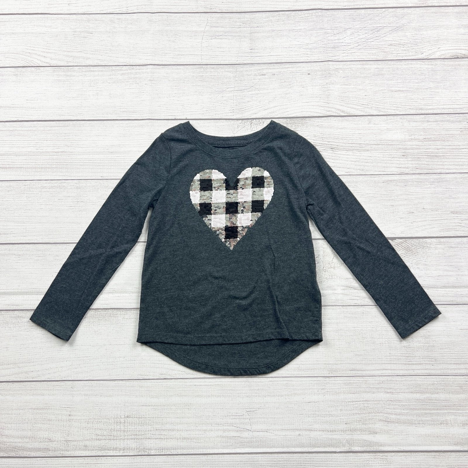 Grey gray long sleeve shirt with flip sequin plaid heart graphic. Red to white. Cotton polyester blend