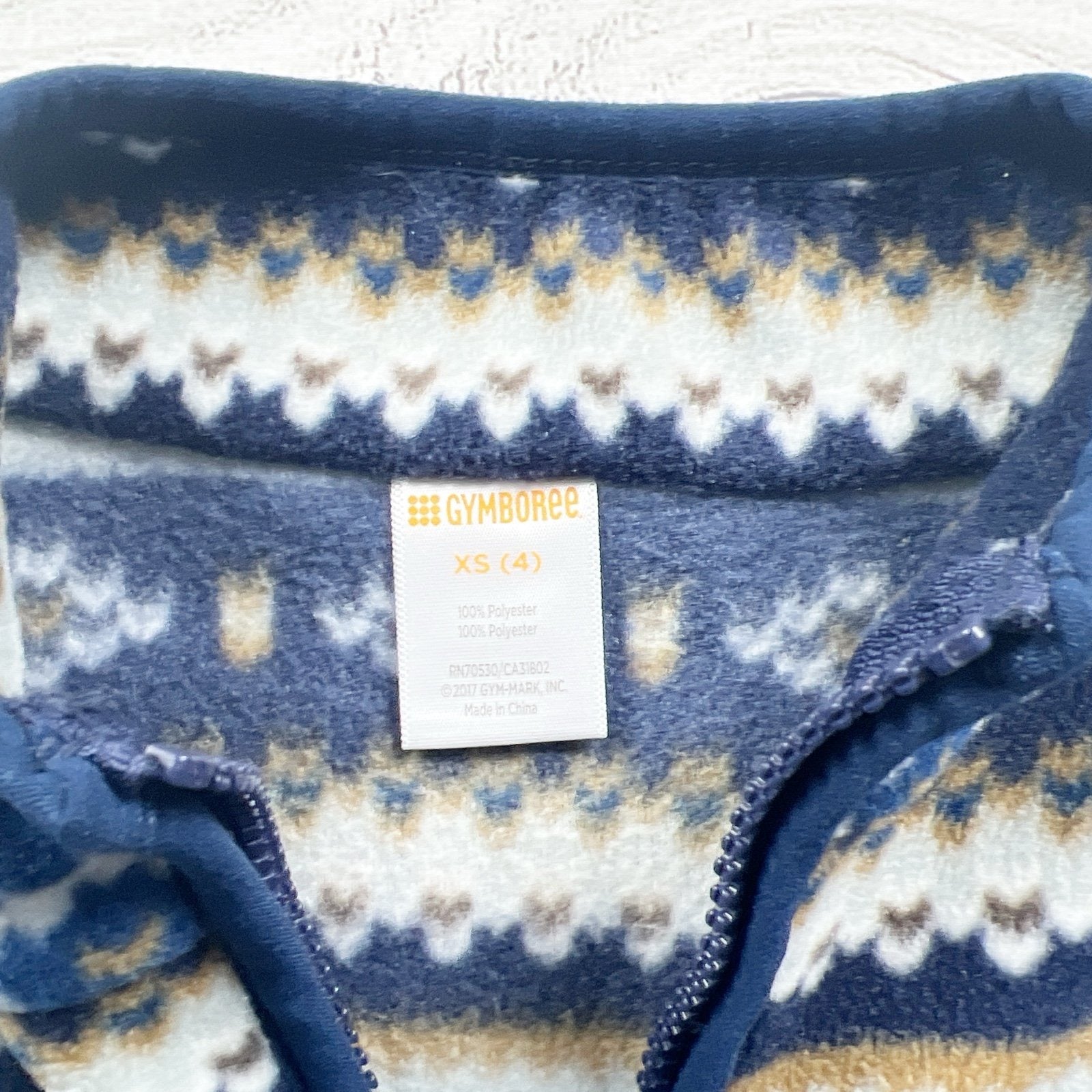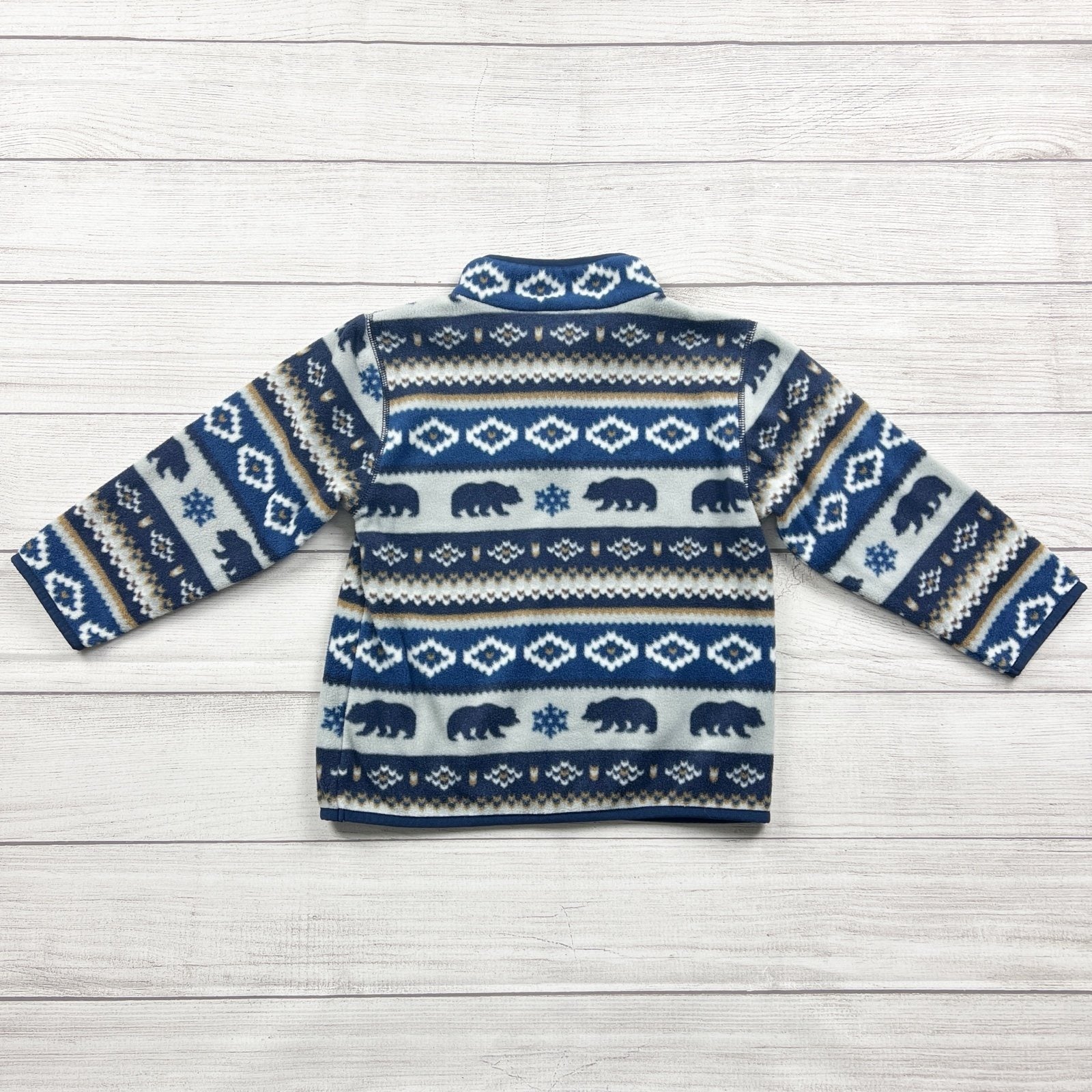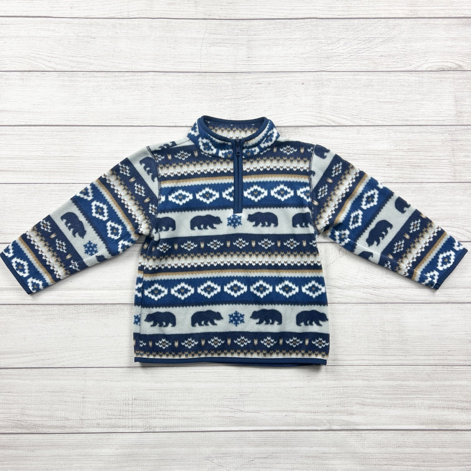 Shades of blue grey gray fairisle bear quarter zip fleece sweatshirt. Polyester