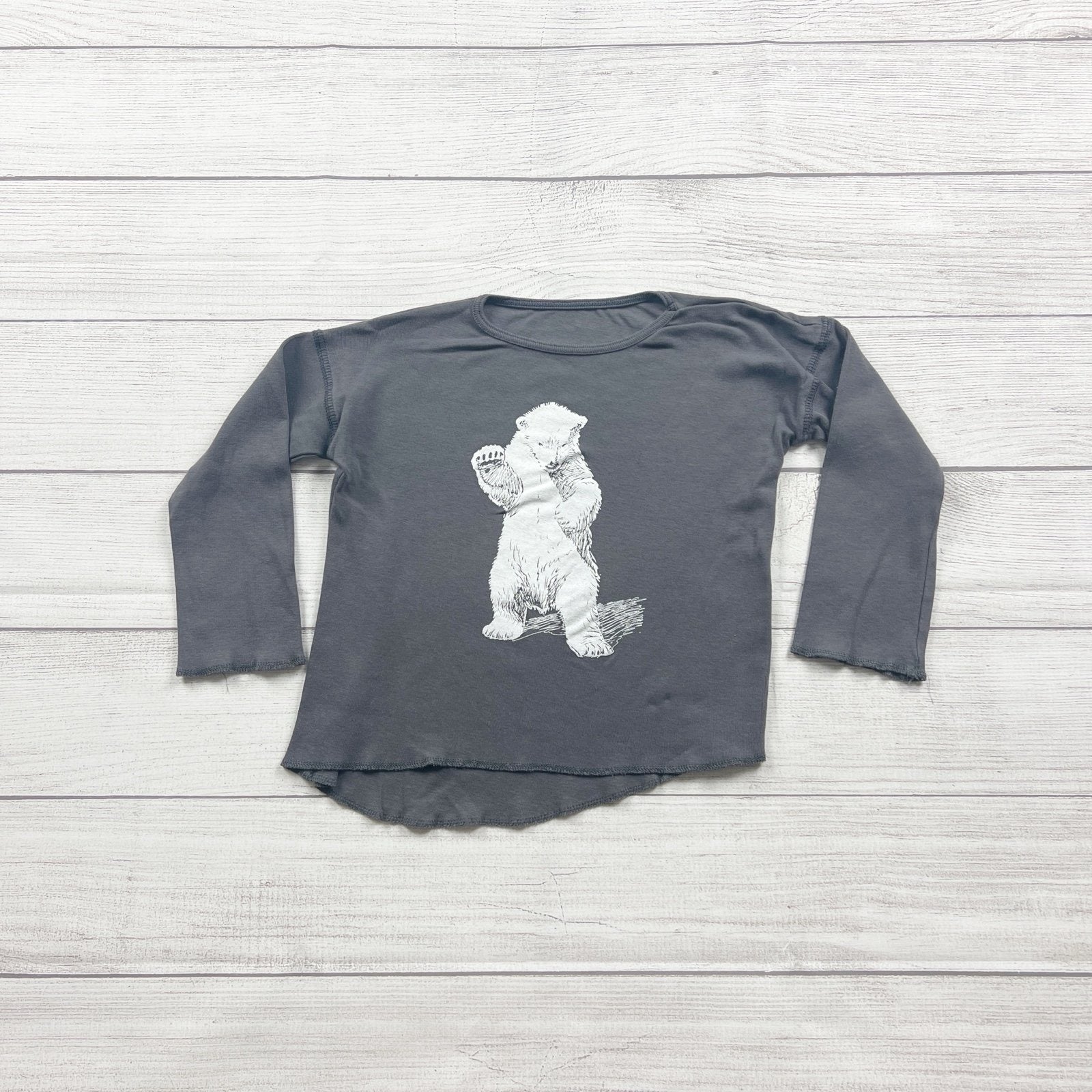 No Biggie4Grey gray long sleeve shirt with bear graphic. Organic cotton
