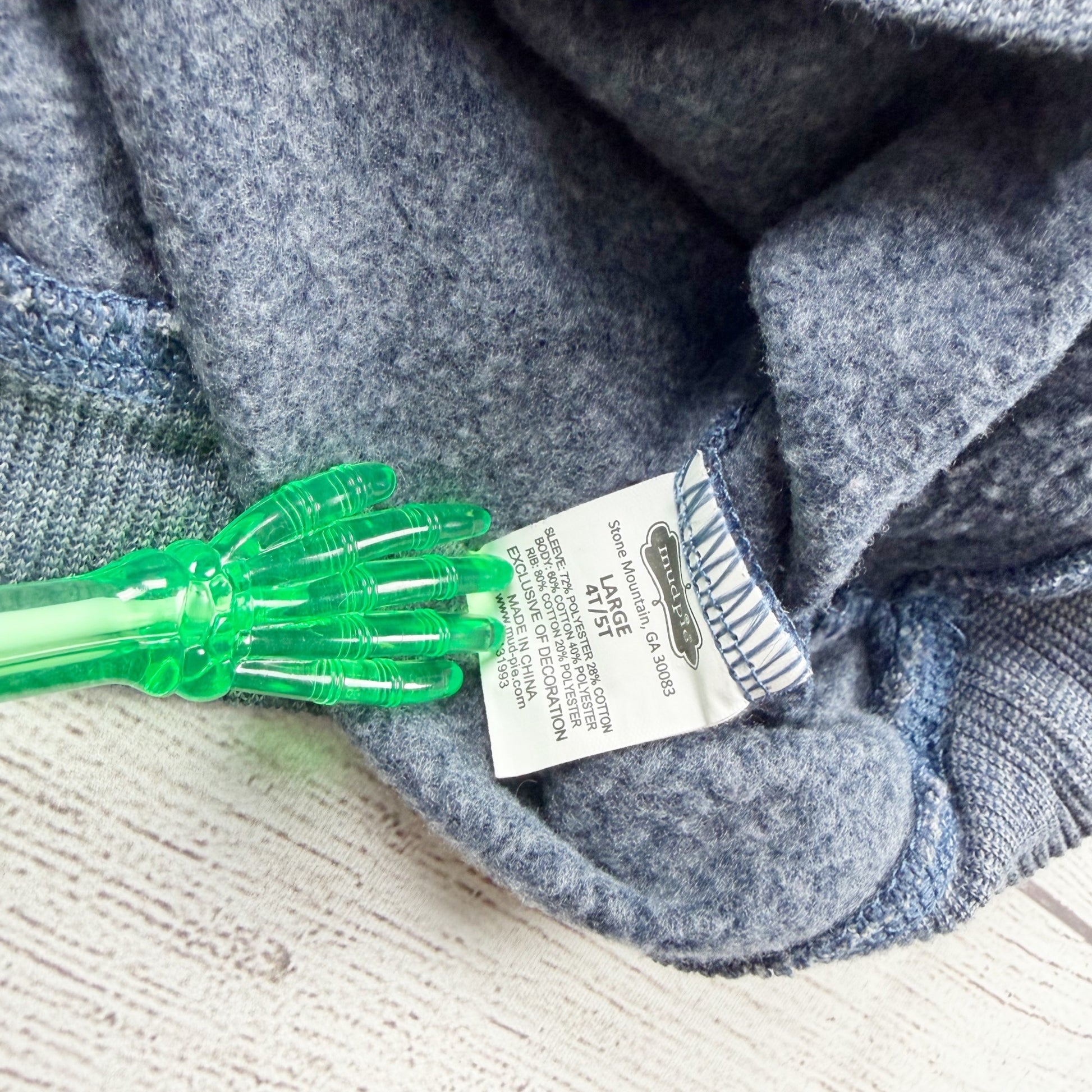 Blue and grey gray quilted long sleeve Crewneck with football appliqué. Polyester cotton blend