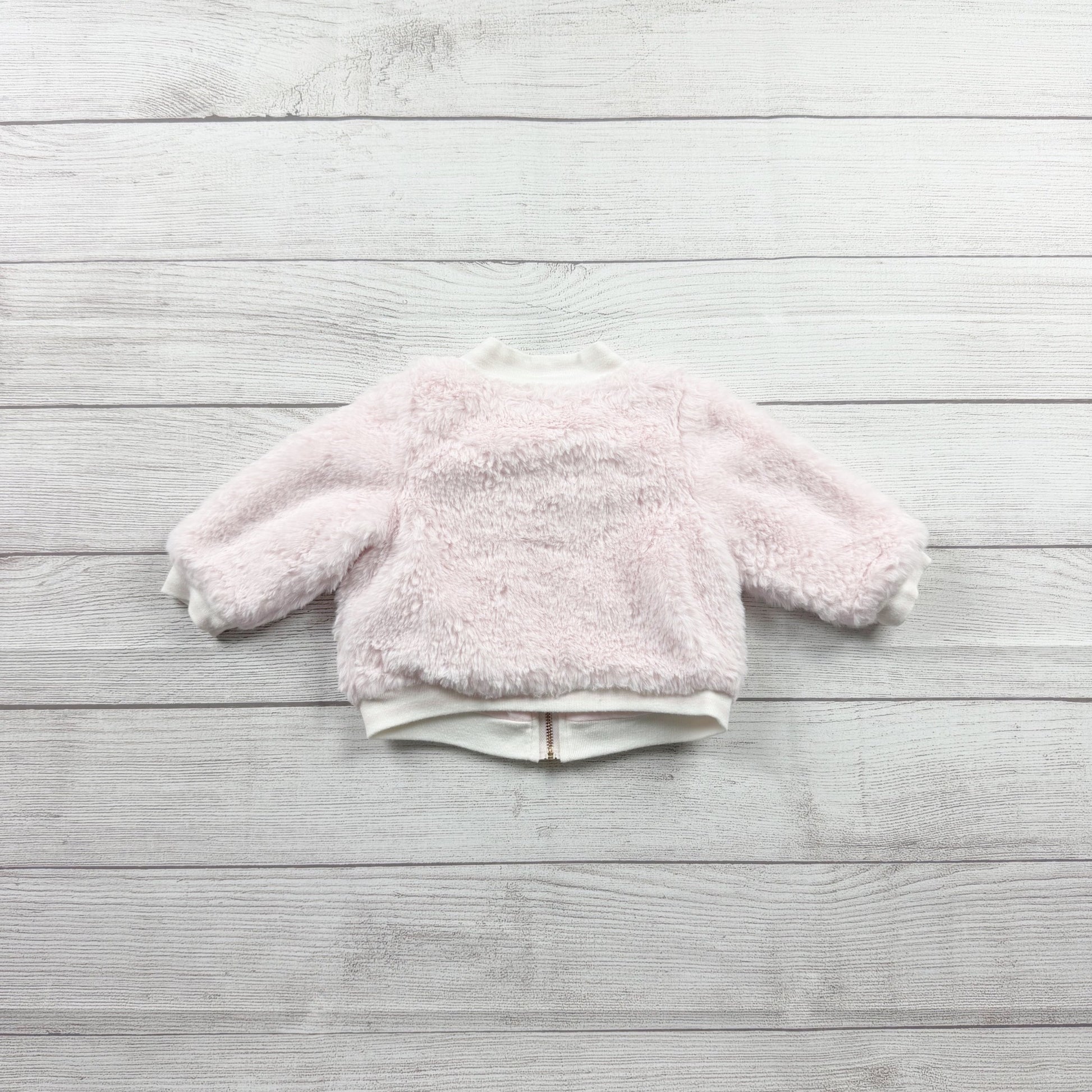 Pink long sleeve full zip bomber jacket. Polyester cotton blend