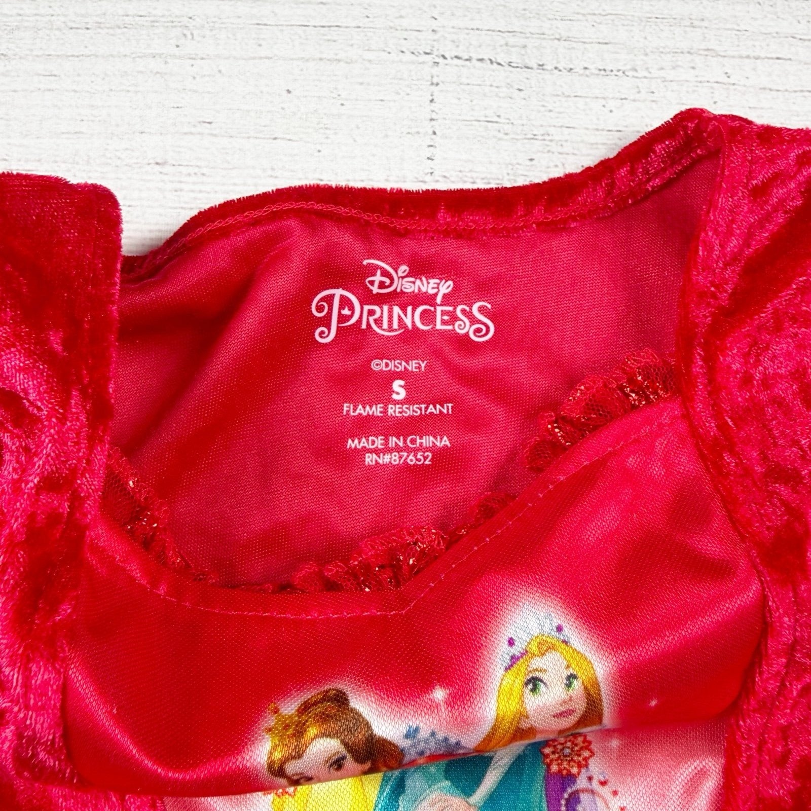 Red short sleeve nightgown with tulle and faux fur accents. Christmas holiday. Ariel Little Mermaid. Rapunzel. Belle Beauty and the Beast. Polyester