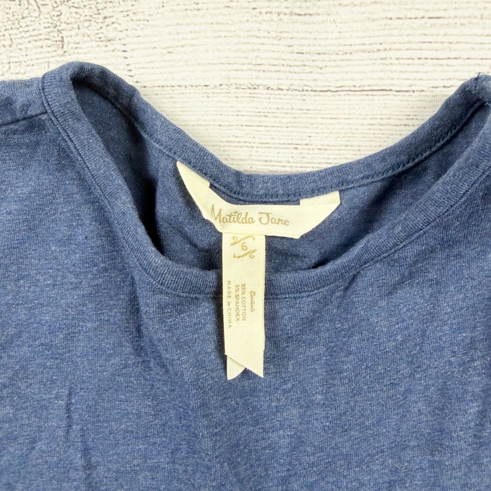 Blue long sleeve dress with ruffled bottom. Button accents on sleeves. Cotton spandex blend.