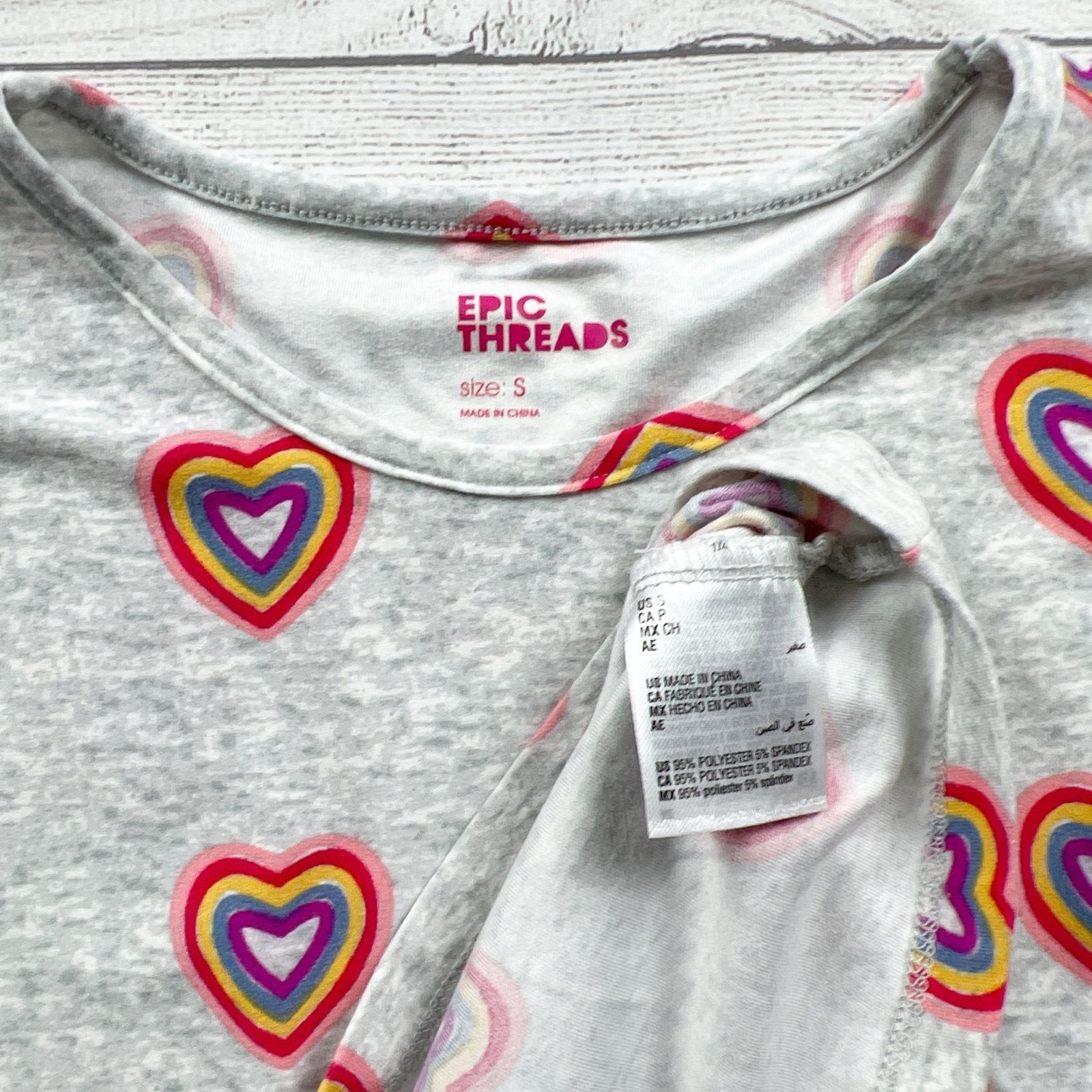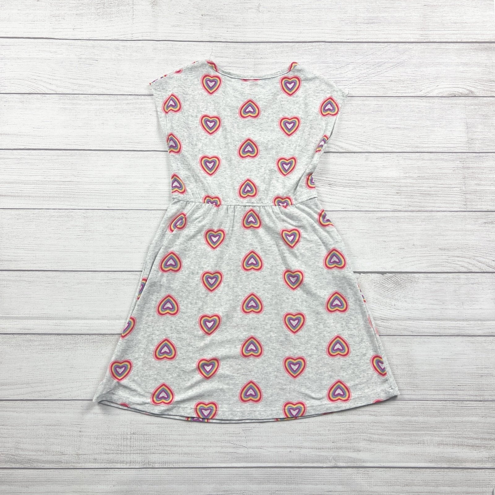 Grey gray sleeveless dress with colorful hearts print. Pockets. Polyester spandex blend