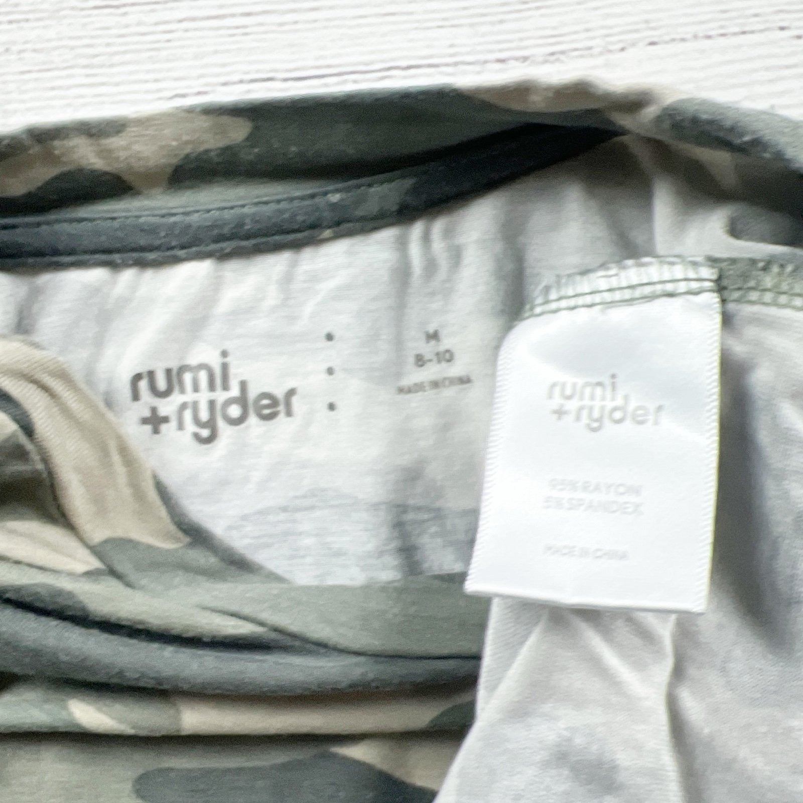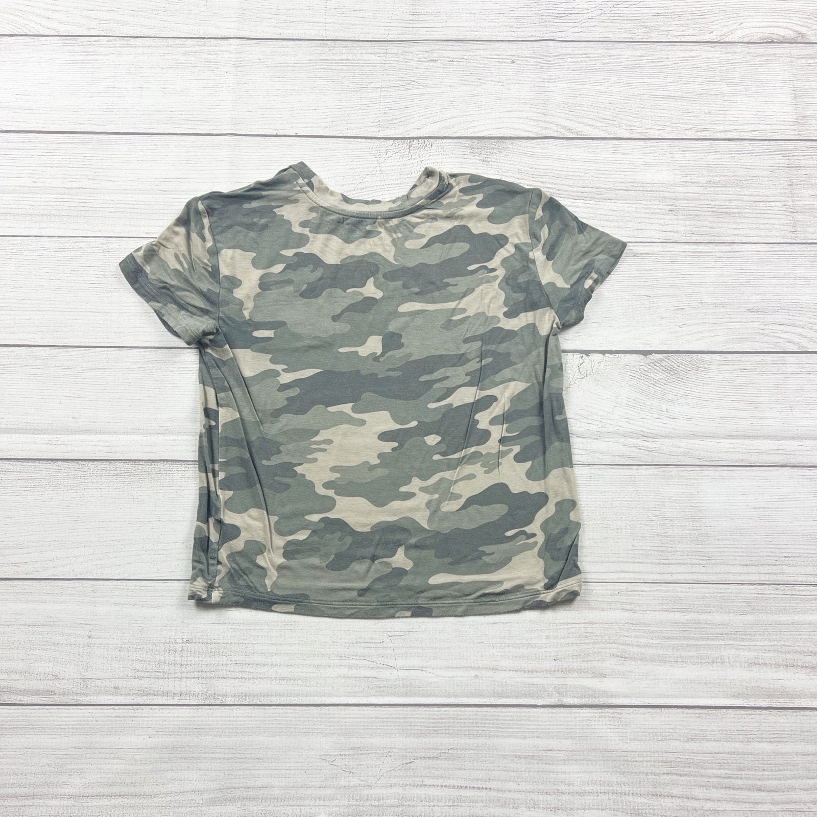 Short sleeve camouflage Camo shirt in shades of green. Chest pocket. Rayon spandex blend