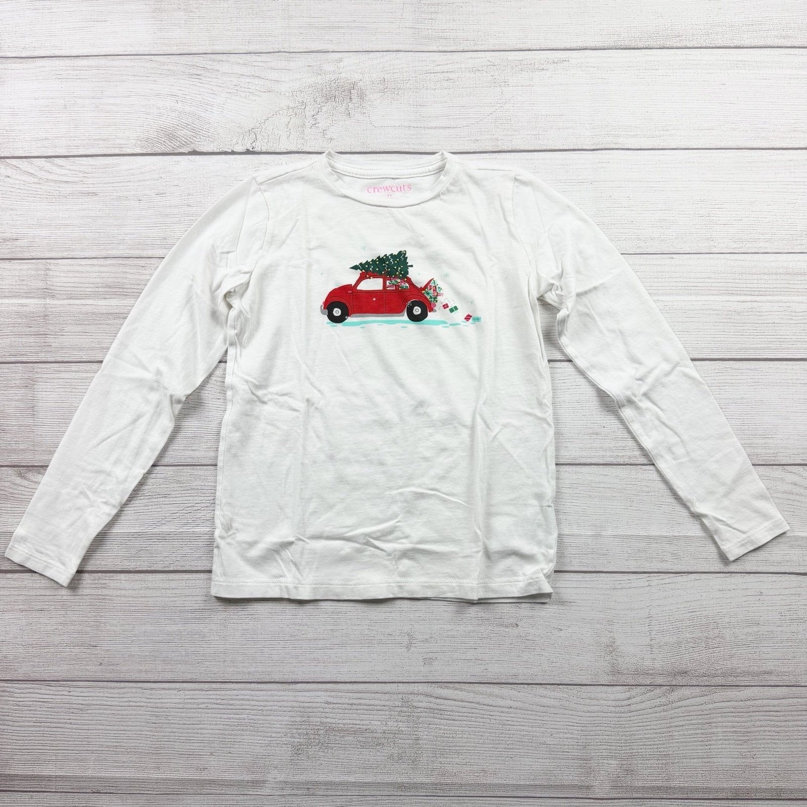 White long sleeve shirt car and Christmas tree presents graphic. Cotton