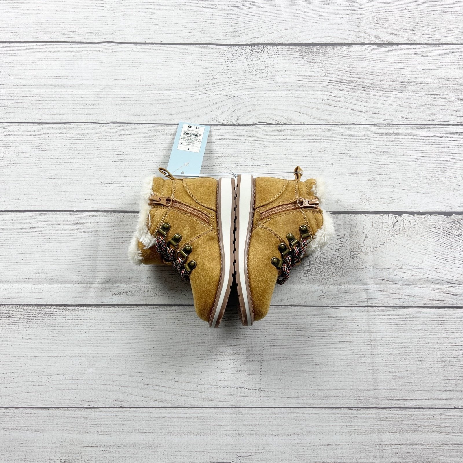 Brown fleece lined up up slip on boots with laces. Zipper on side