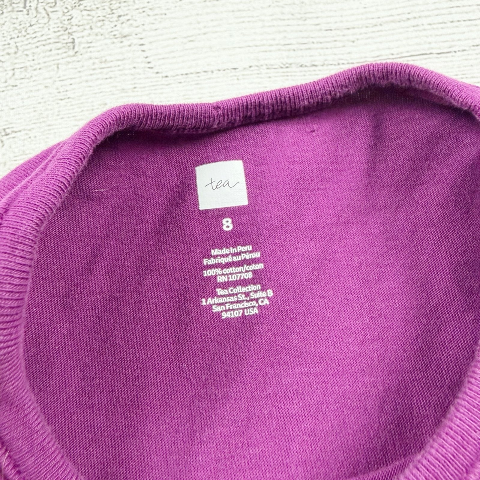 Purple long sleeve dress with woodland deer graphic. Keyhole at collar. Cotton