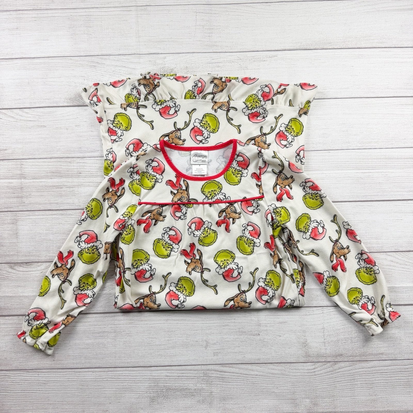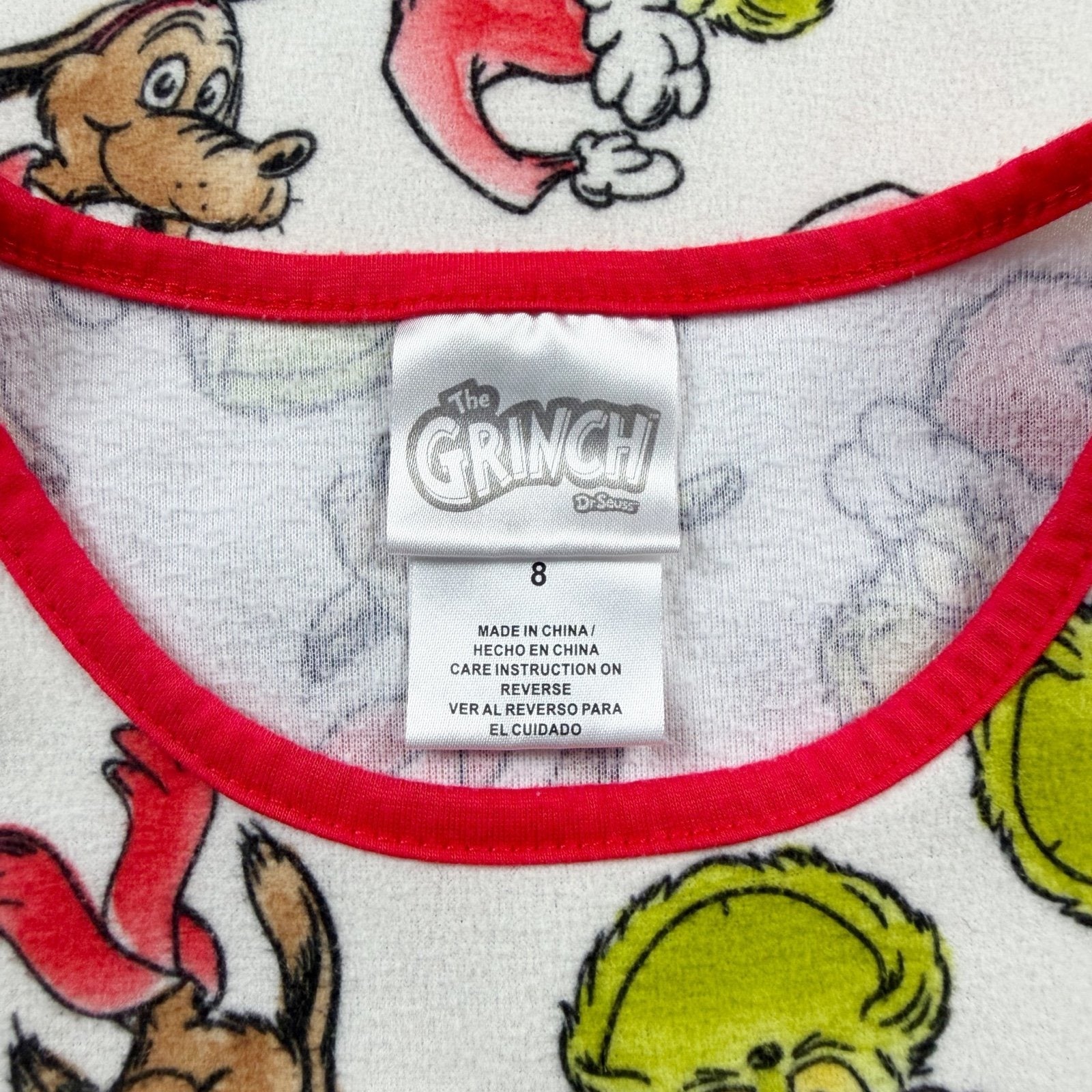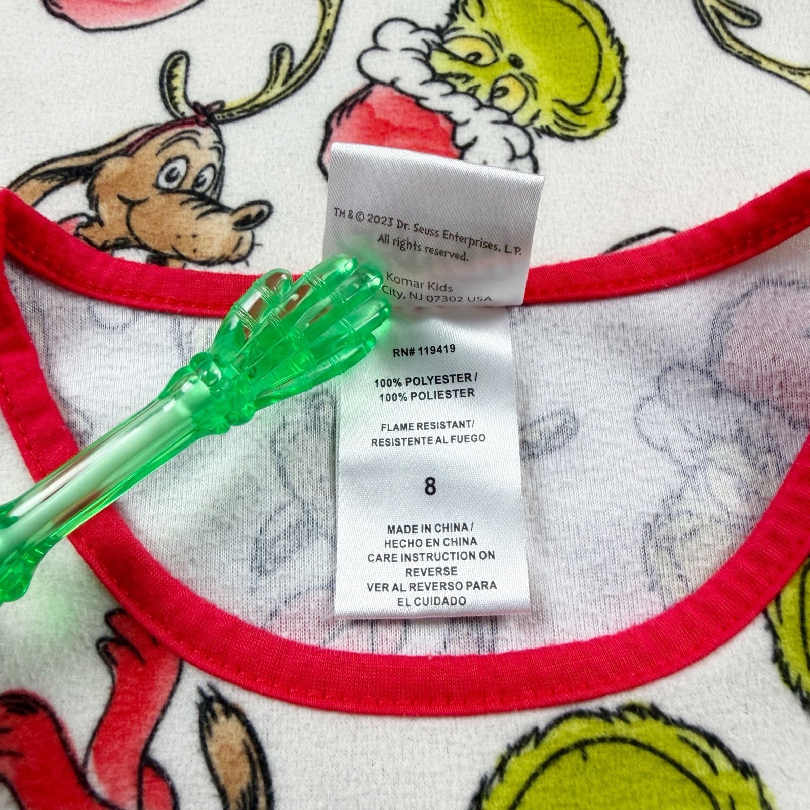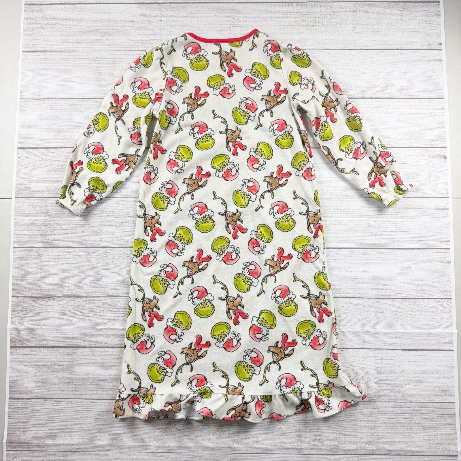 Long sleeve granny nightgown with Grinch and Max face print. Polyester