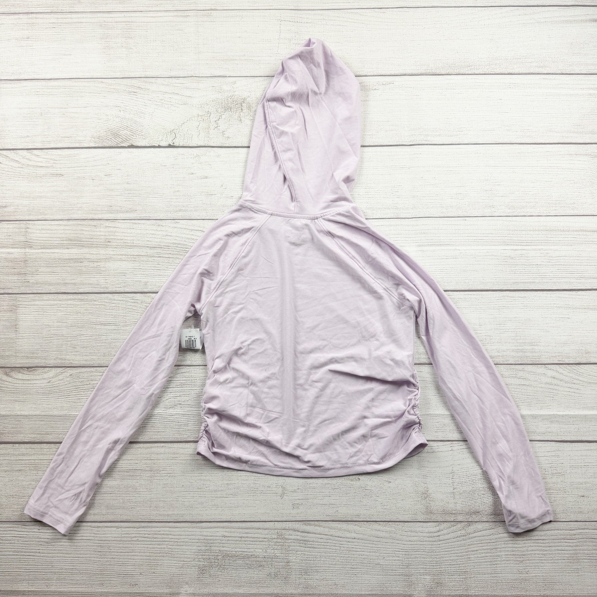 Light purple long sleeve hoodie hooded shirt with thumb holes. Polyester spandex blend