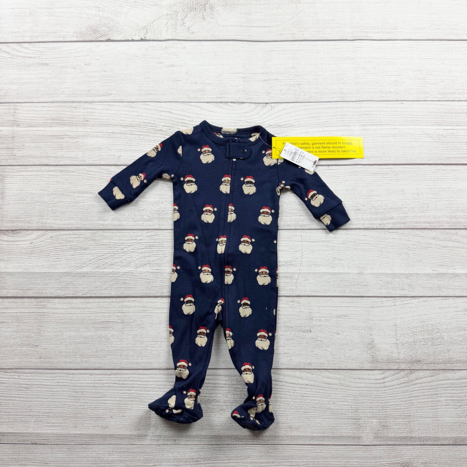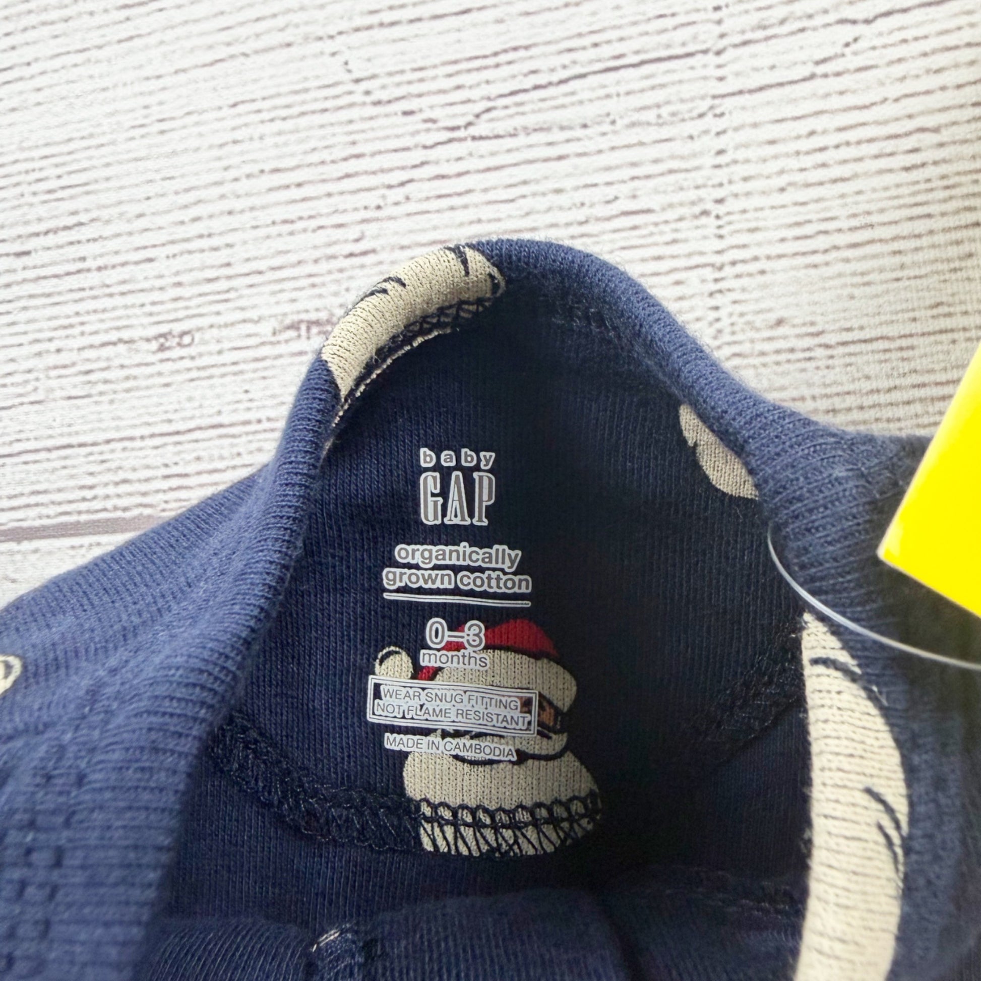 Baby Gap sleeper, organic cotton baby pajamas, 0-3 months sleeper, Santa print sleeper, navy Christmas baby pajamas, holiday footie pajamas, zip up baby sleeper, baby Christmas outfit, festive newborn pajamas, winter baby sleepwear, sustainable baby clothing