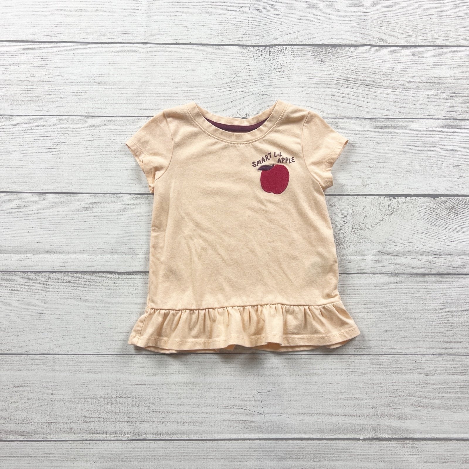 Cat & Jack Toddler Girl Shirt “Smart Lil Apple” Graphic Tee Ruffle Hem 3T