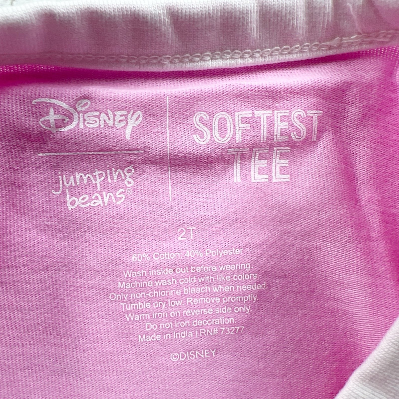 Disney “Softest Tee” by Jumping Beans toddler girl short sleeve t-shirt in size 2T. Pink ringer-style tee with “Hoppy Easter” graphic featuring Minnie and Mickey Mouse with a cute bunny. New with tags (shown). Great for Easter outfits, spring photos, and Disney fans.