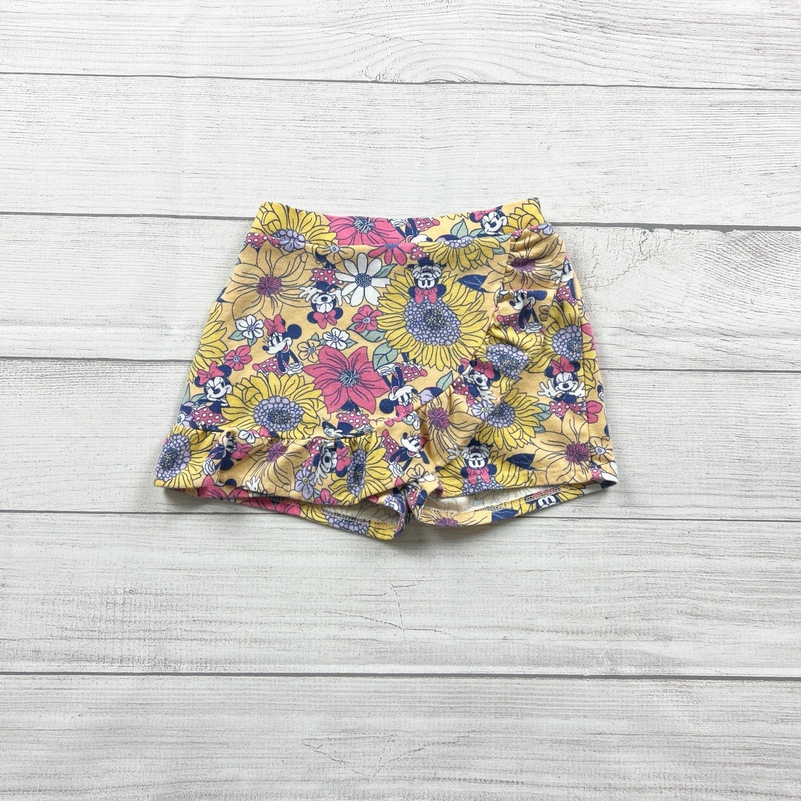 Disney Minnie Mouse Girls Shorts Floral Sunflower Print Yellow Pull On 4T