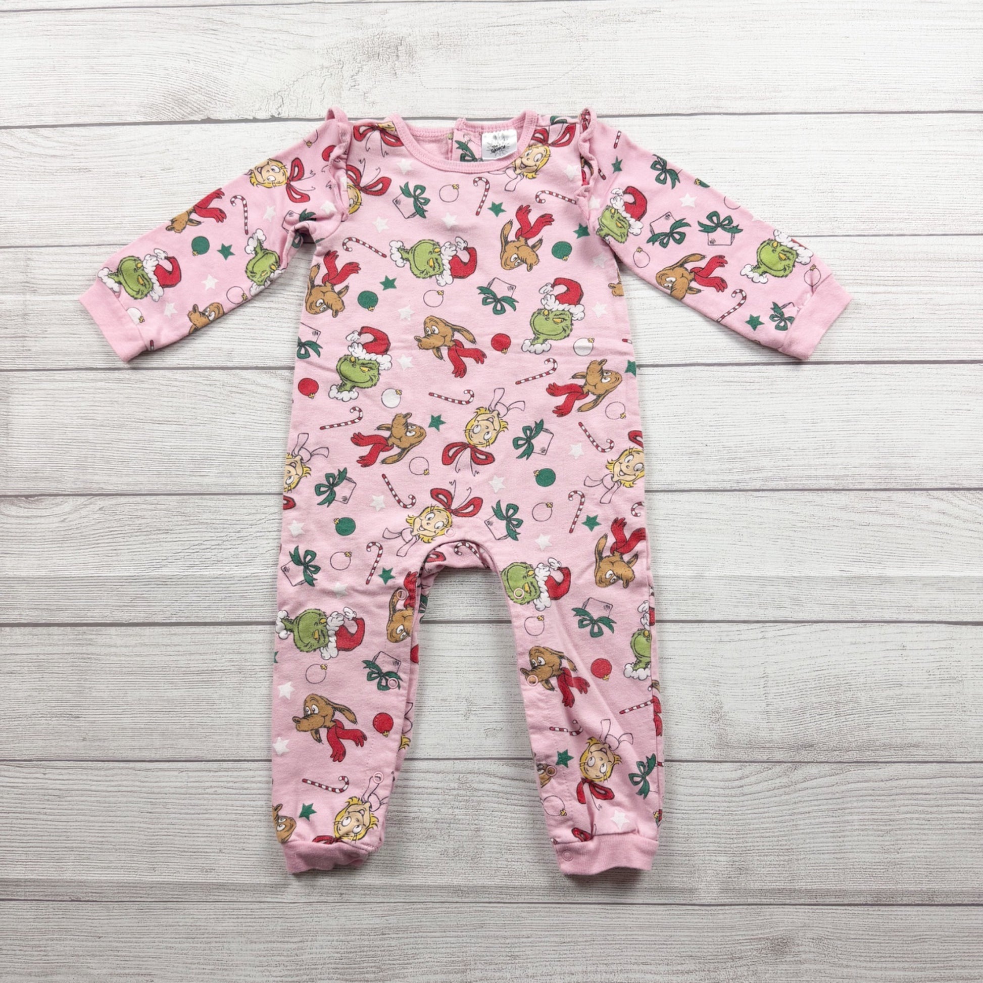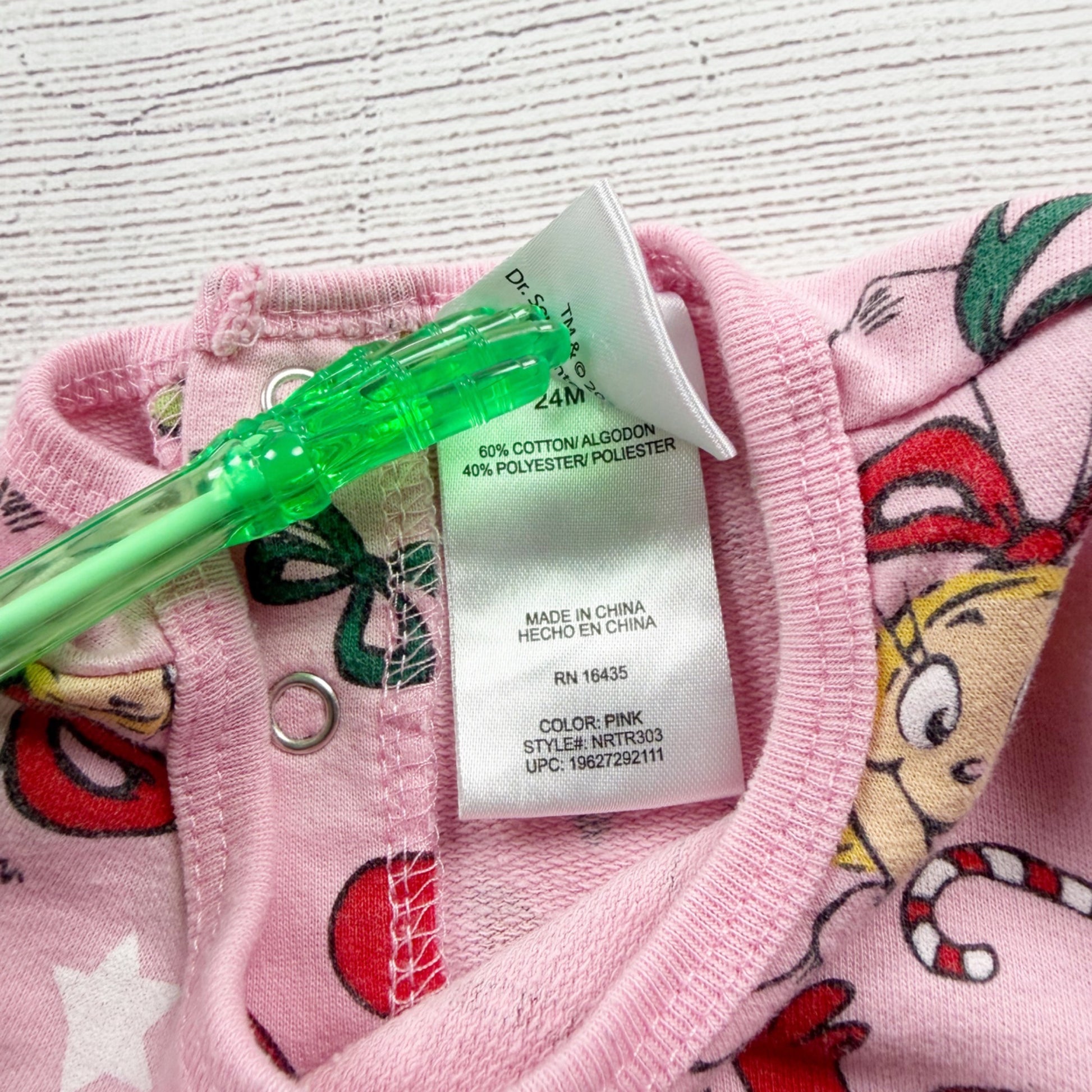 Dr. Seuss Baby Christmas Romper Pink Grinch Cindy Lou Who One Piece 24 Months