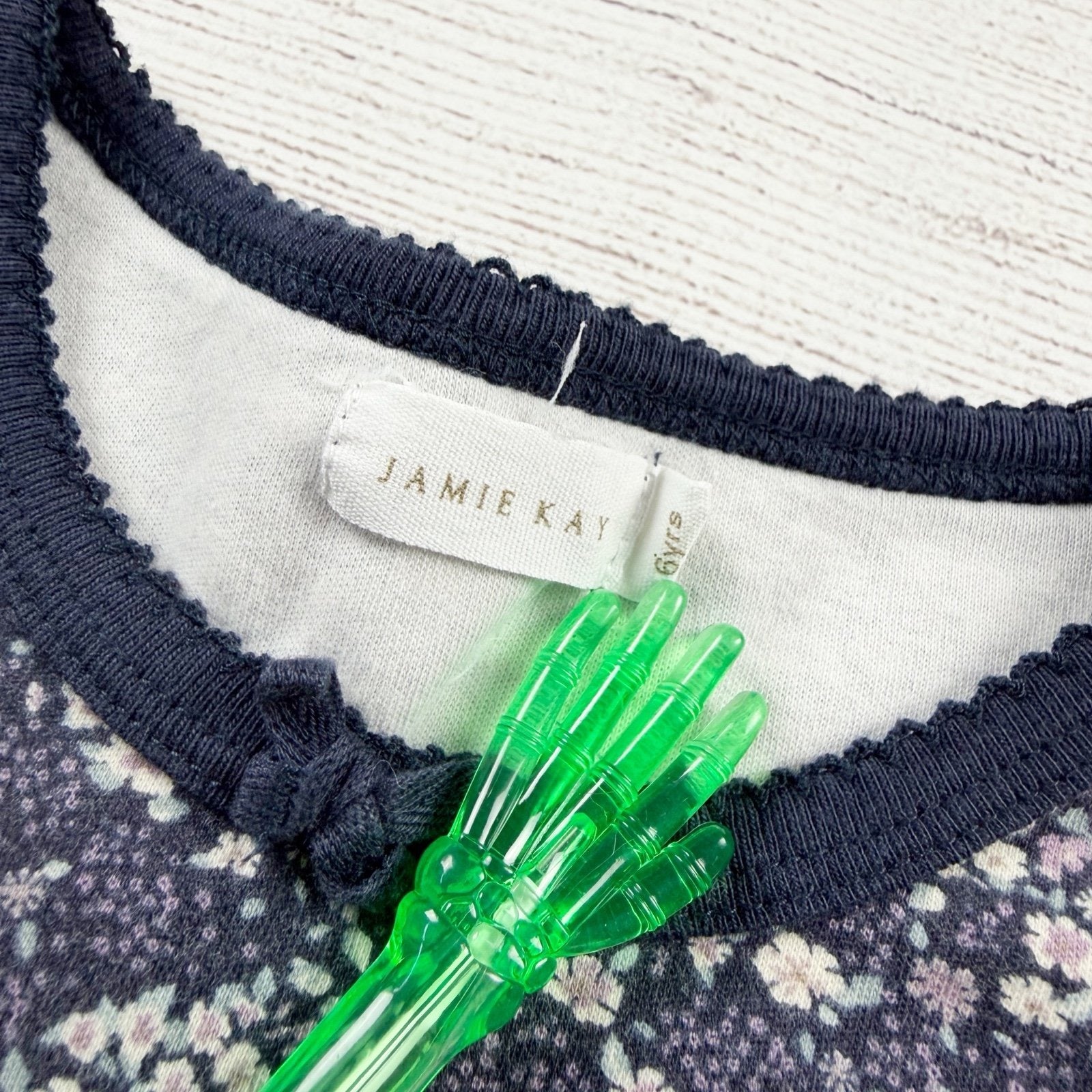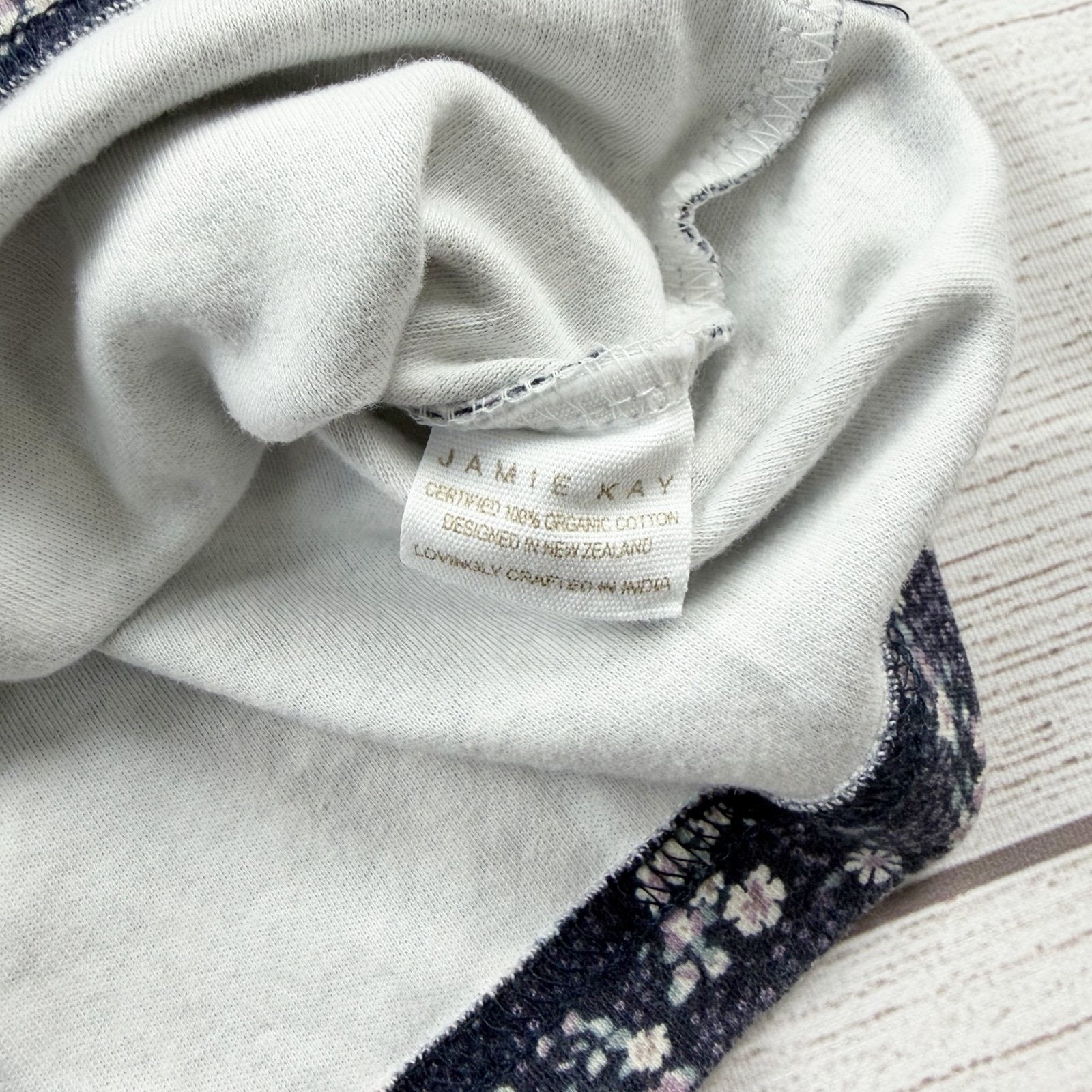 Blue floral flower print ribbed long sleeve top. Organic cotton