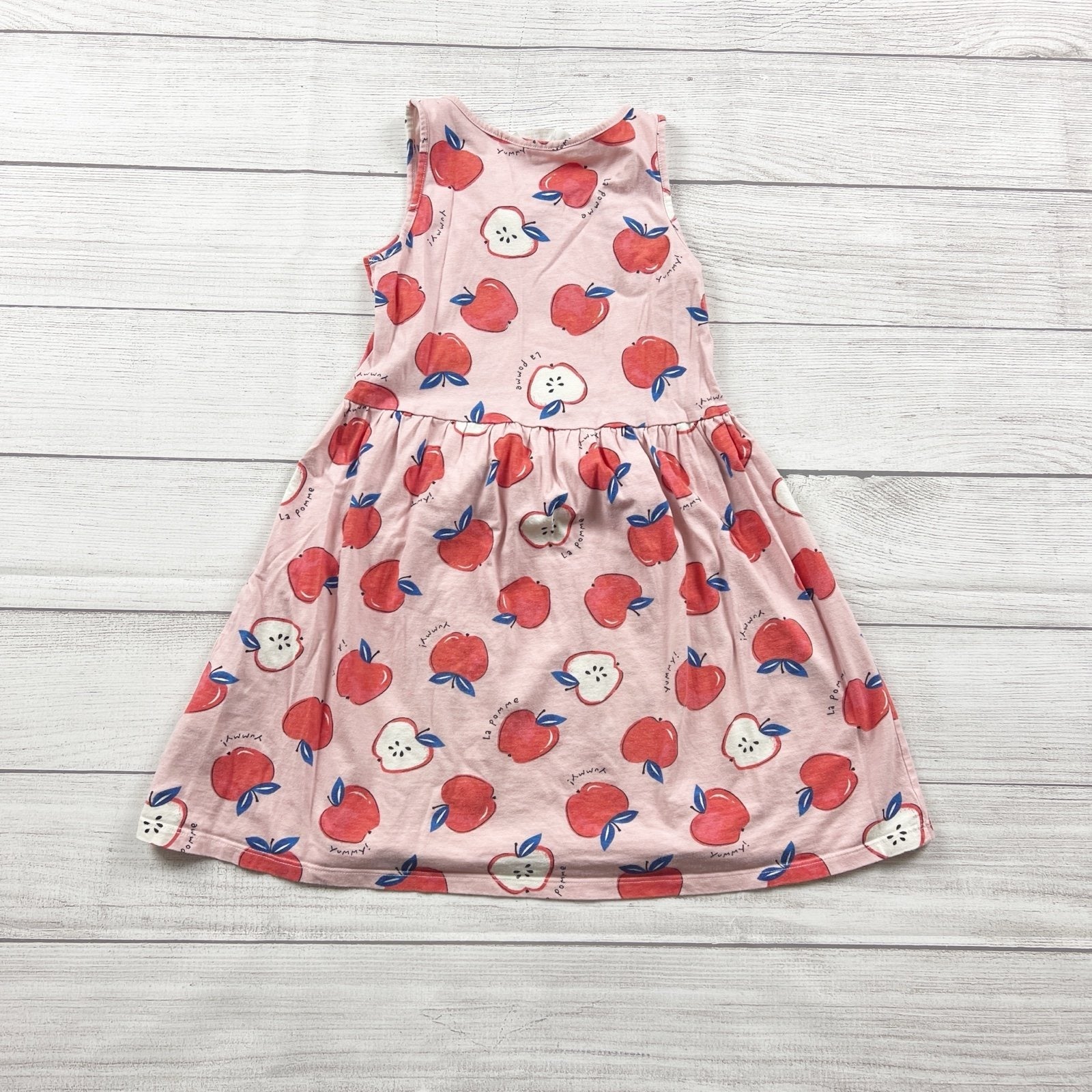 H&M girls dress, apple print dress, 6 8 years dress, pink summer dress, sleeveless kids dress, cotton dress girls, fruit print dress, twirl dress