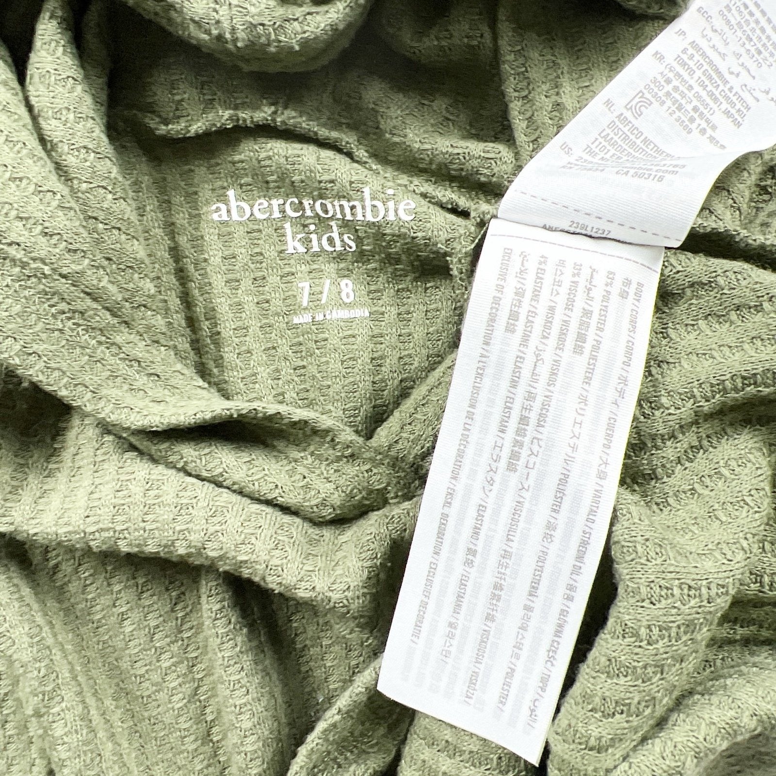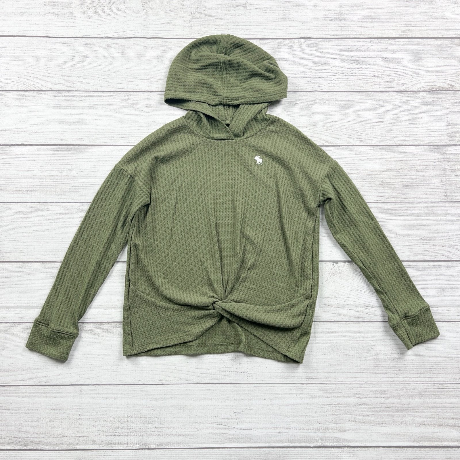 Solid green waffle long sleeve hoodie hooded shirt with knot at bottom