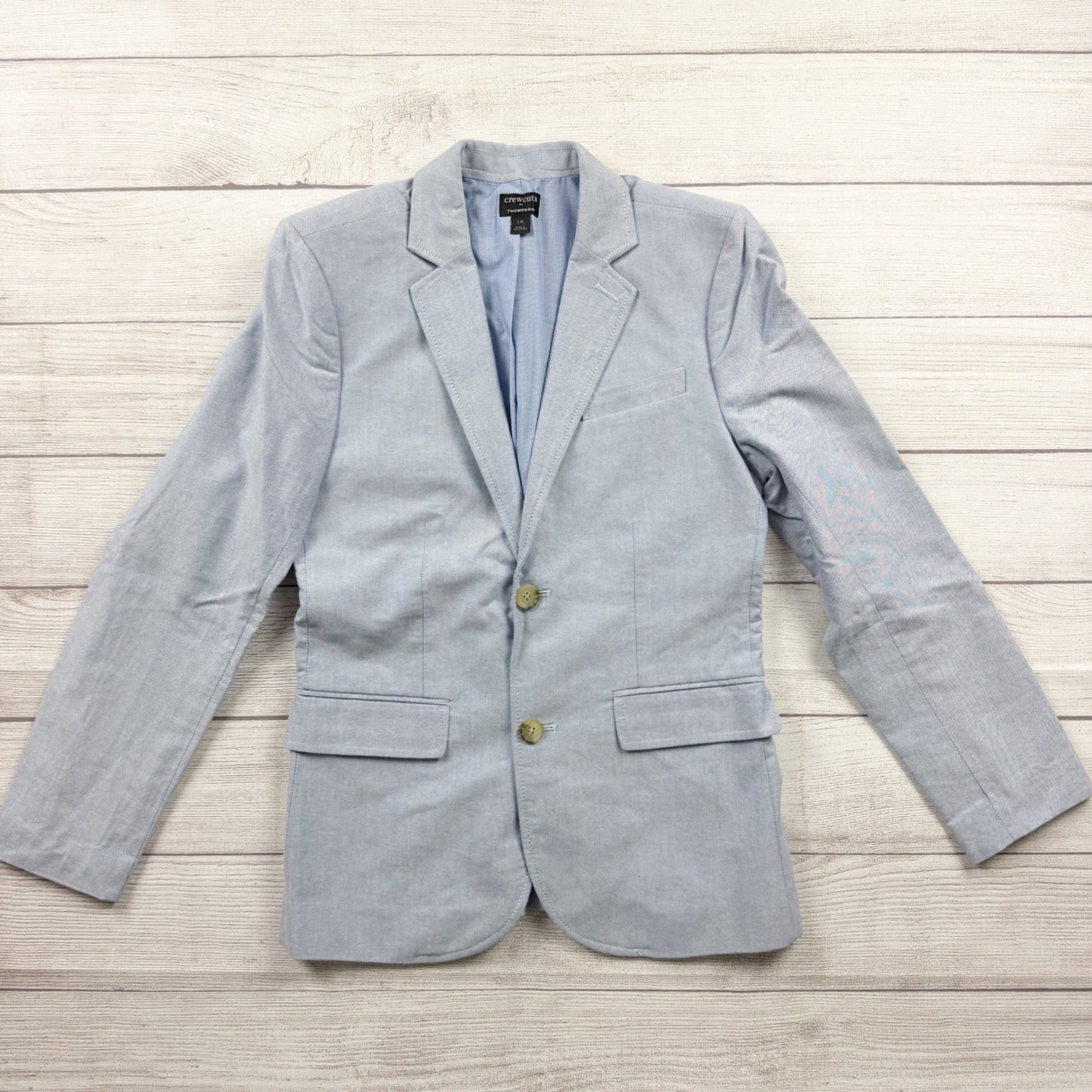 J. Crew, Crewcuts, Boys Blazer, Size 14, Thompson Jacket, Light Blue Sport Coat, Kids Formal Wear, Wedding Guest, Graduation Suit, Re-Imagined, Cotton Oxford, Preppy Style, Easter Suit, School Dance.