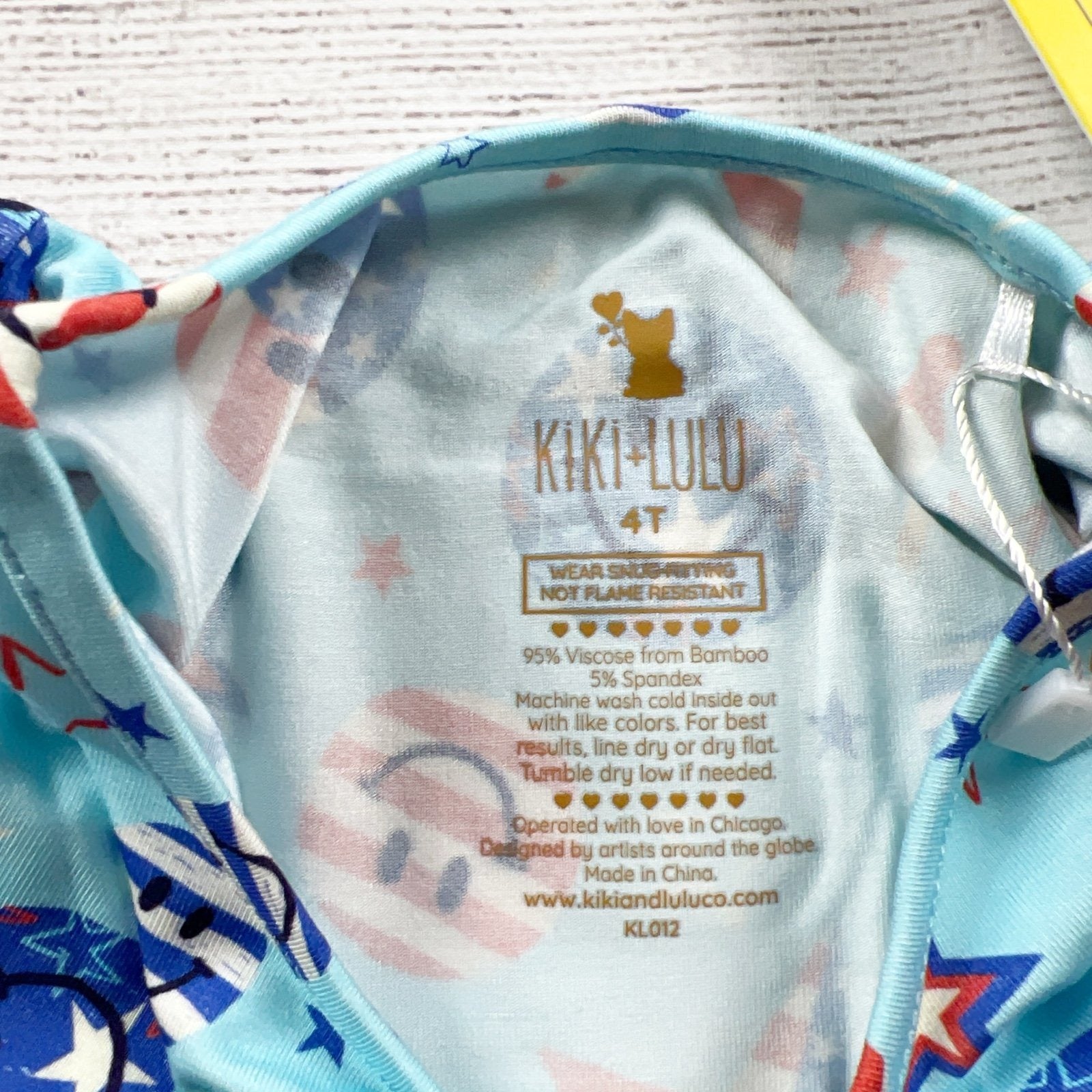 Kiki + Lulu girls long sleeve tutu dress in size 4T. Blue top with patriotic stars and stripes print, paired with a bright red layered tulle skirt. Super soft and stretchy bamboo blend, snug fit (per tag). New with tags—perfect for 4th of July, summer parties, and special occasions.