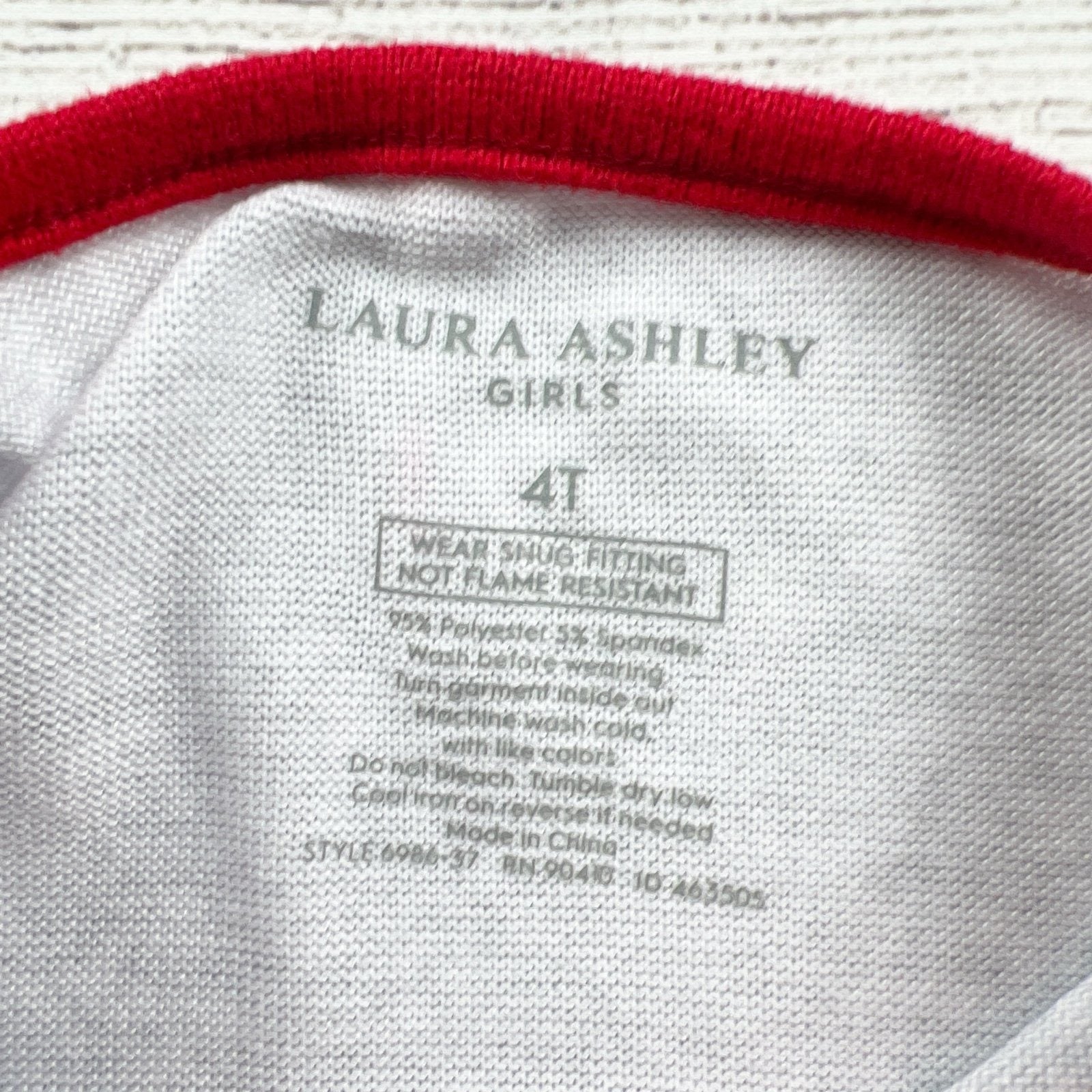 Laura Ashley pajamas, girls 4T pajamas, dog pajamas, puppy print pajamas, snug fit pajama set, toddler girl pjs, red trim pajamas, NWT kids pajamas