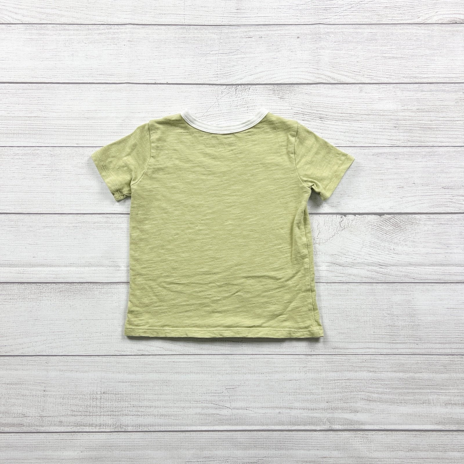 Little Co. by Lauren Conrad kids short-sleeve t-shirt in size 4T in a soft light green color with “LUCKY ONE” text on the front. Classic crew neck with a white collar trim for a simple, everyday look. Made from 100% organic cotton (per tag) and OEKO-TEX certified. Great for St. Patrick’s Day outfits or year-round wear.