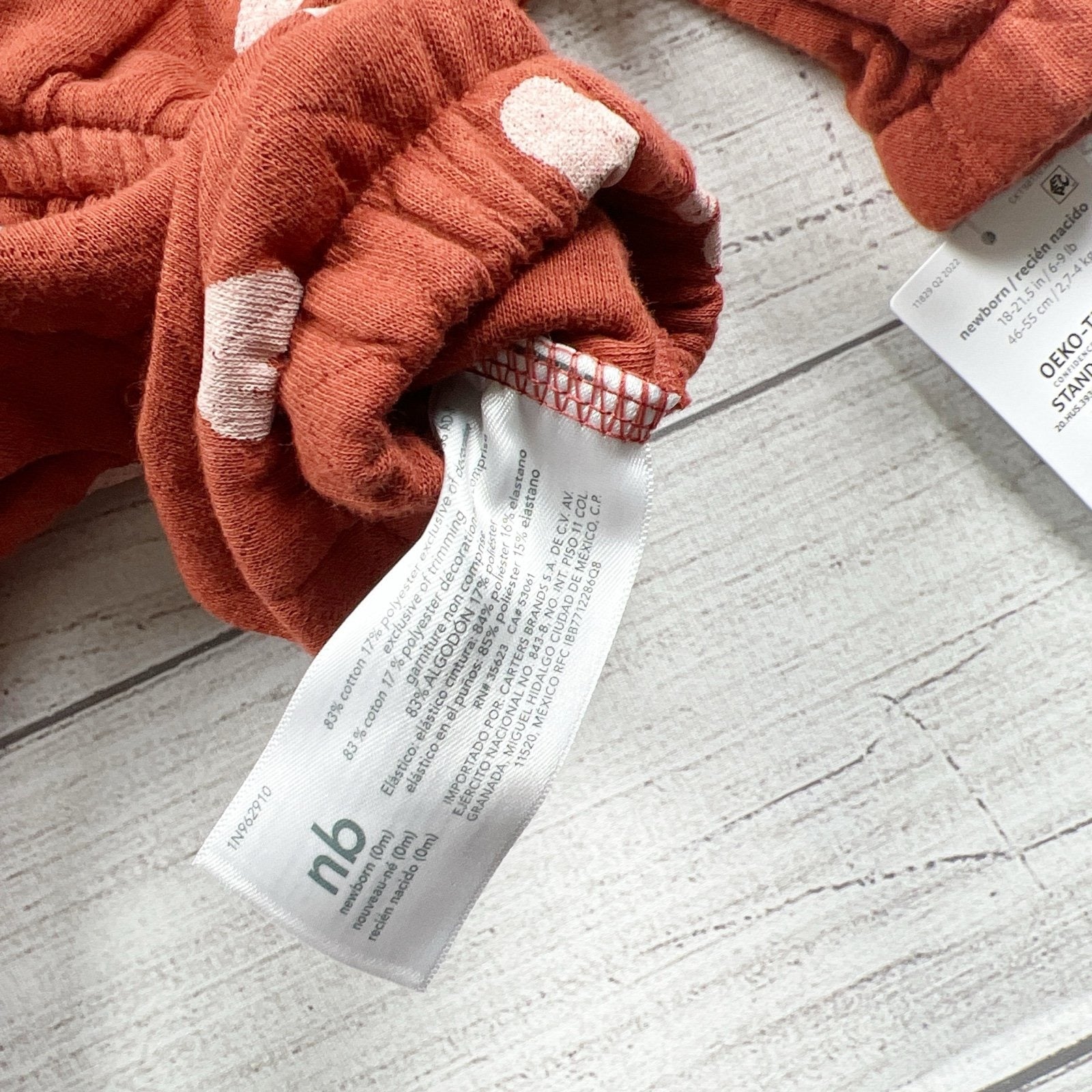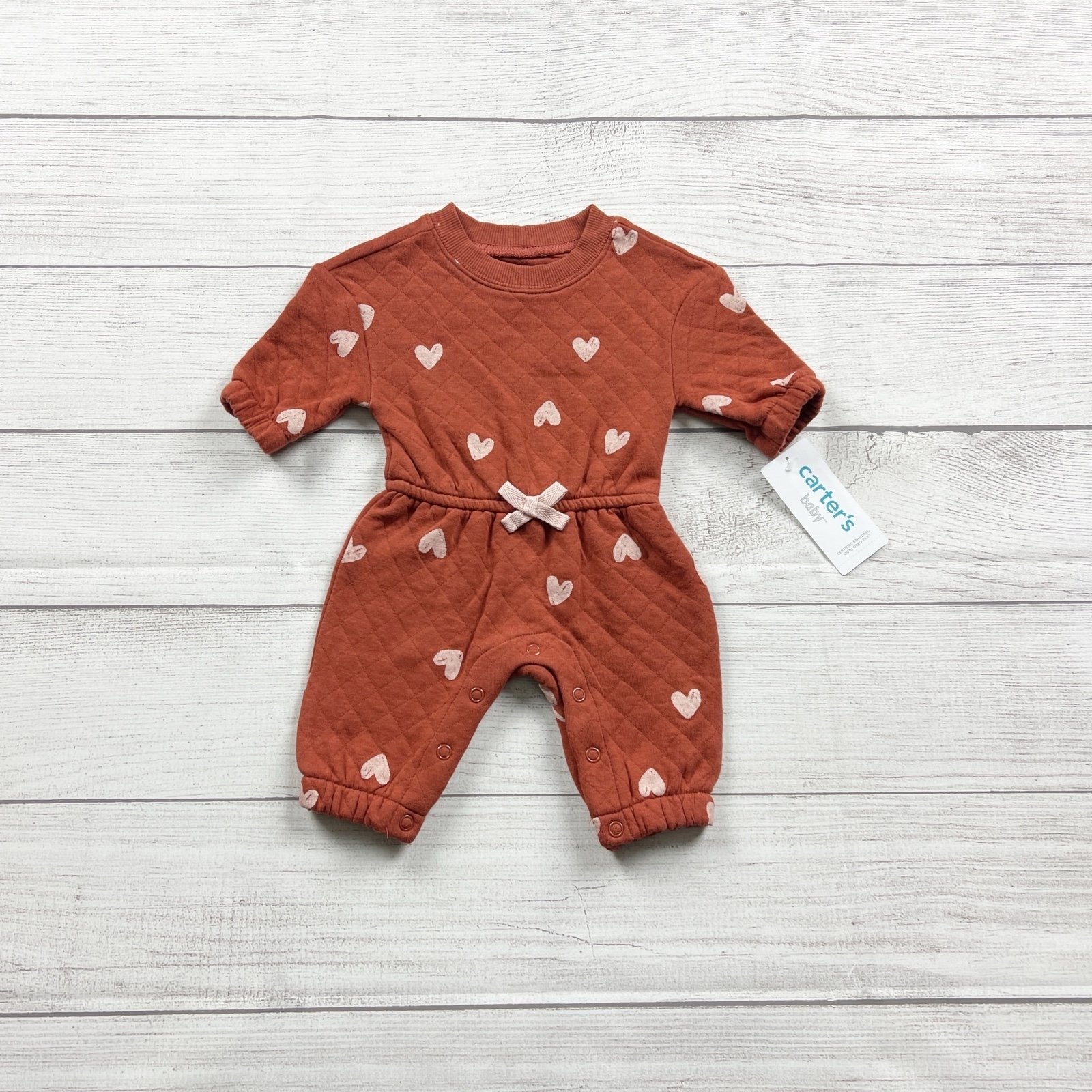 Long sleeve one piece romper with snaps at legs. Heart print.