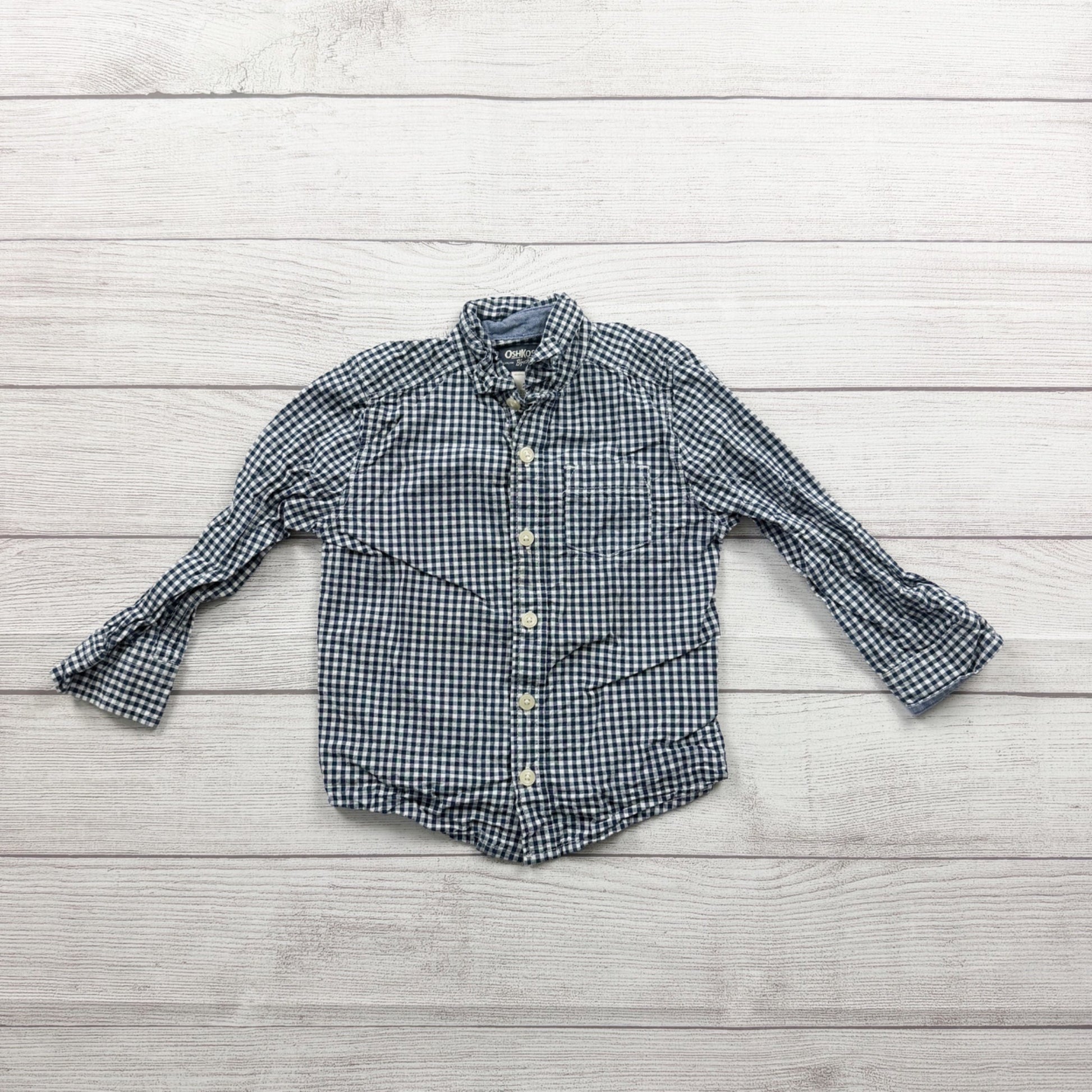 OshKosh B’gosh Toddler Boys Navy White Gingham Button Down Shirt Size 2T