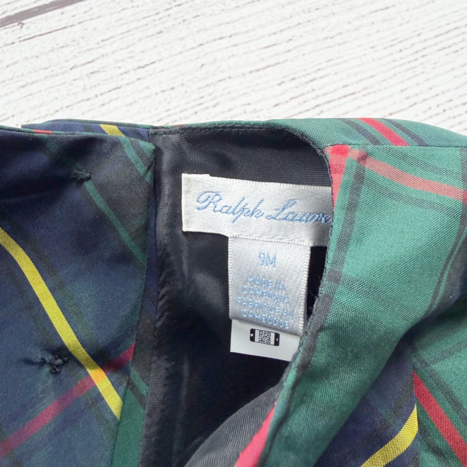 Ralph Lauren baby dress, girls tartan plaid dress 6-9 months, Ralph Lauren plaid dress baby, green navy plaid dress infant, special occasion dress baby girl, holiday dress 6-9 months, preppy baby dress, puff sleeve dress infant, tartan dress with bloomers, family photo outfit baby, new with tags Ralph Lauren, sustainable kids clothing, affordable designer baby, Thrifty Threads kids clothing