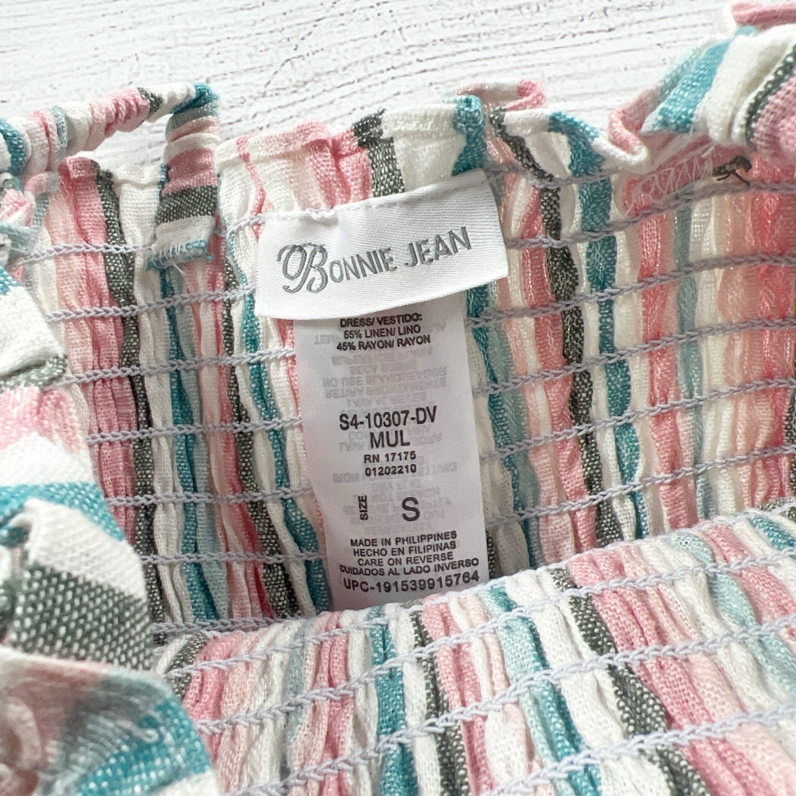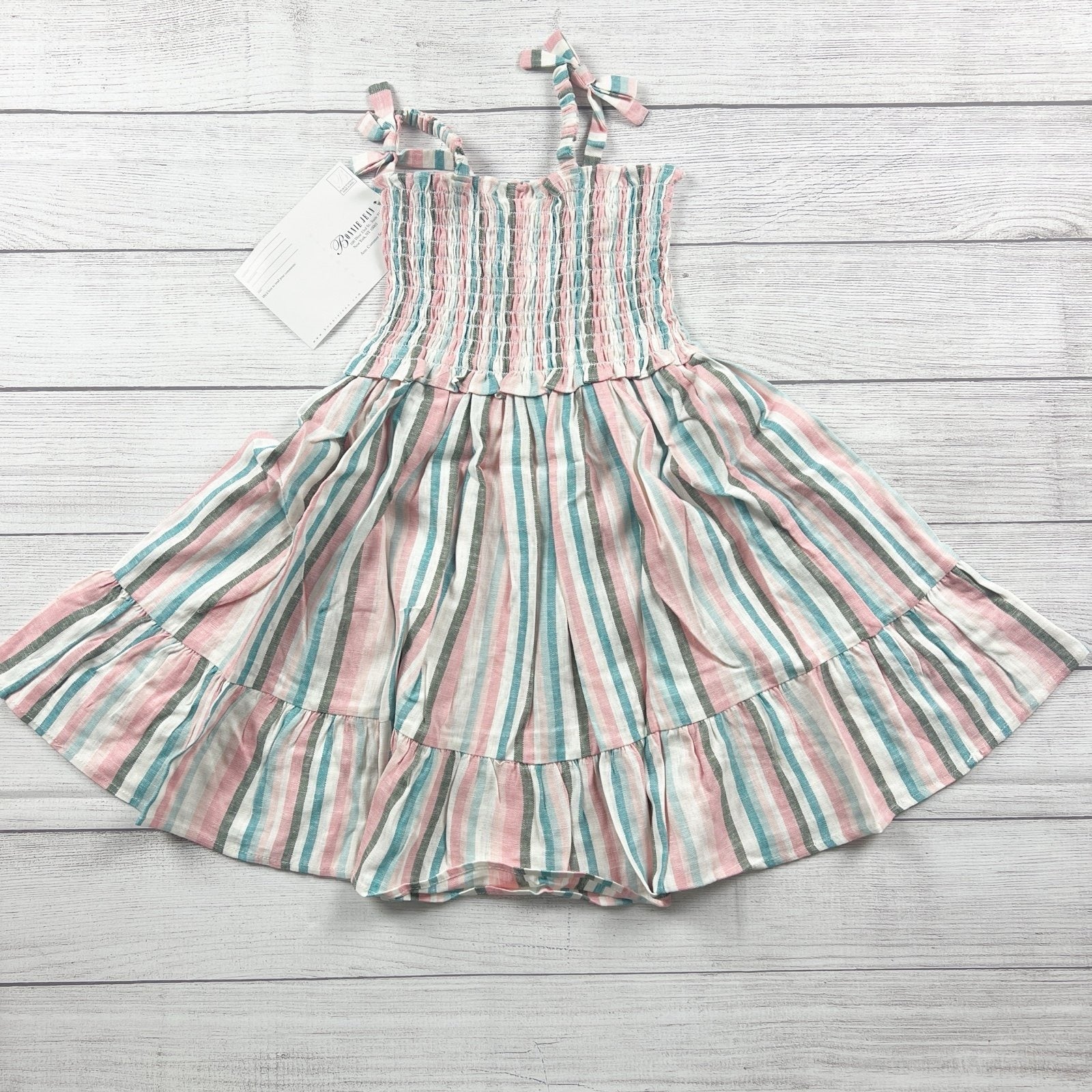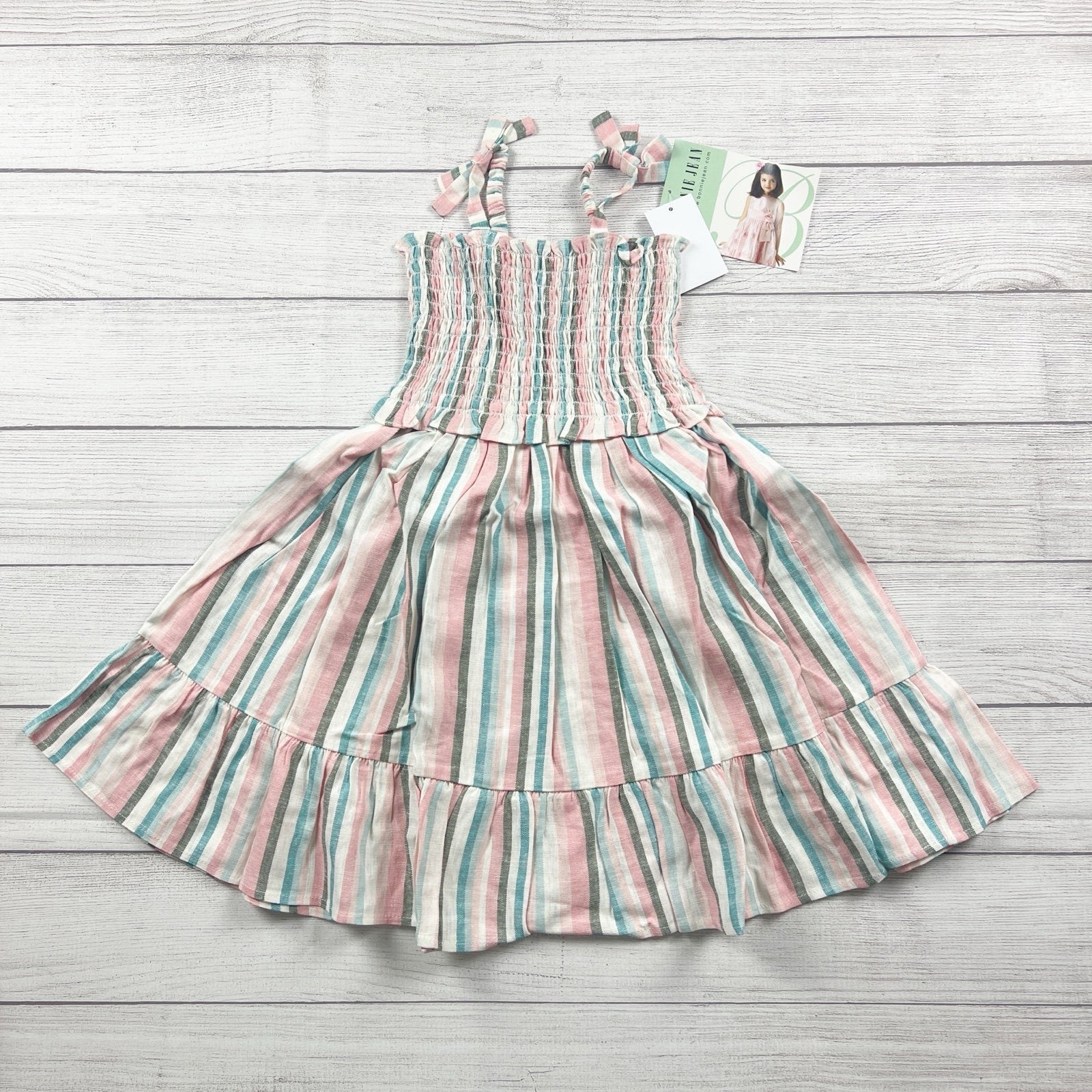 Stripe sleeveless smocked dress. Linen Rayon blend