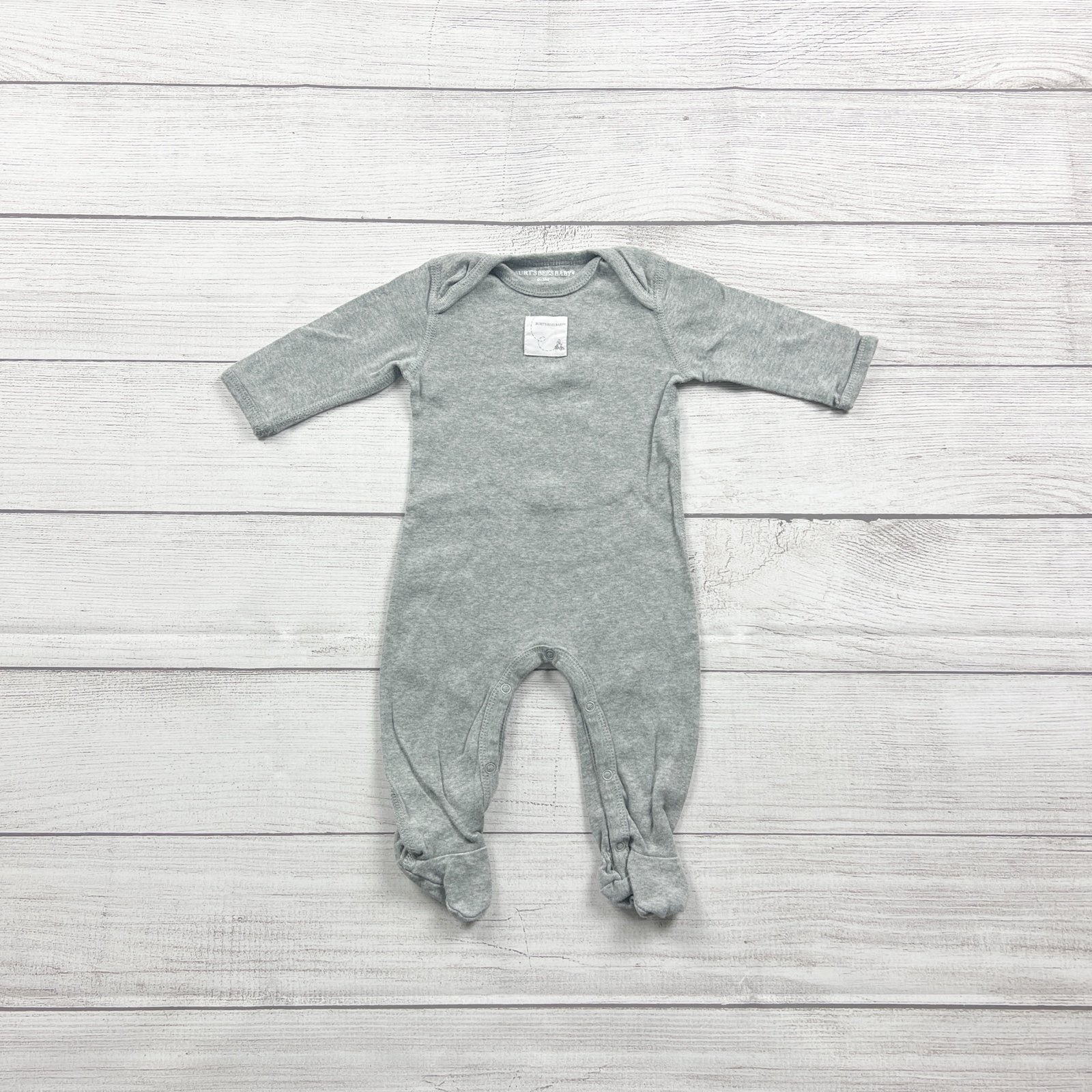 Solid grey gray long sleeve one piece organic cotton romper pajamas with snaps at legs. Footed.