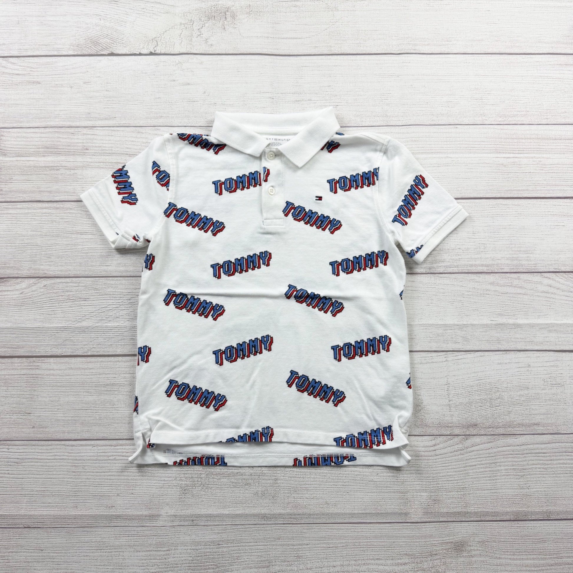 Tommy Hilfiger Boys Polo Shirt Allover “Tommy” Logo Print Short Sleeve M 8-10